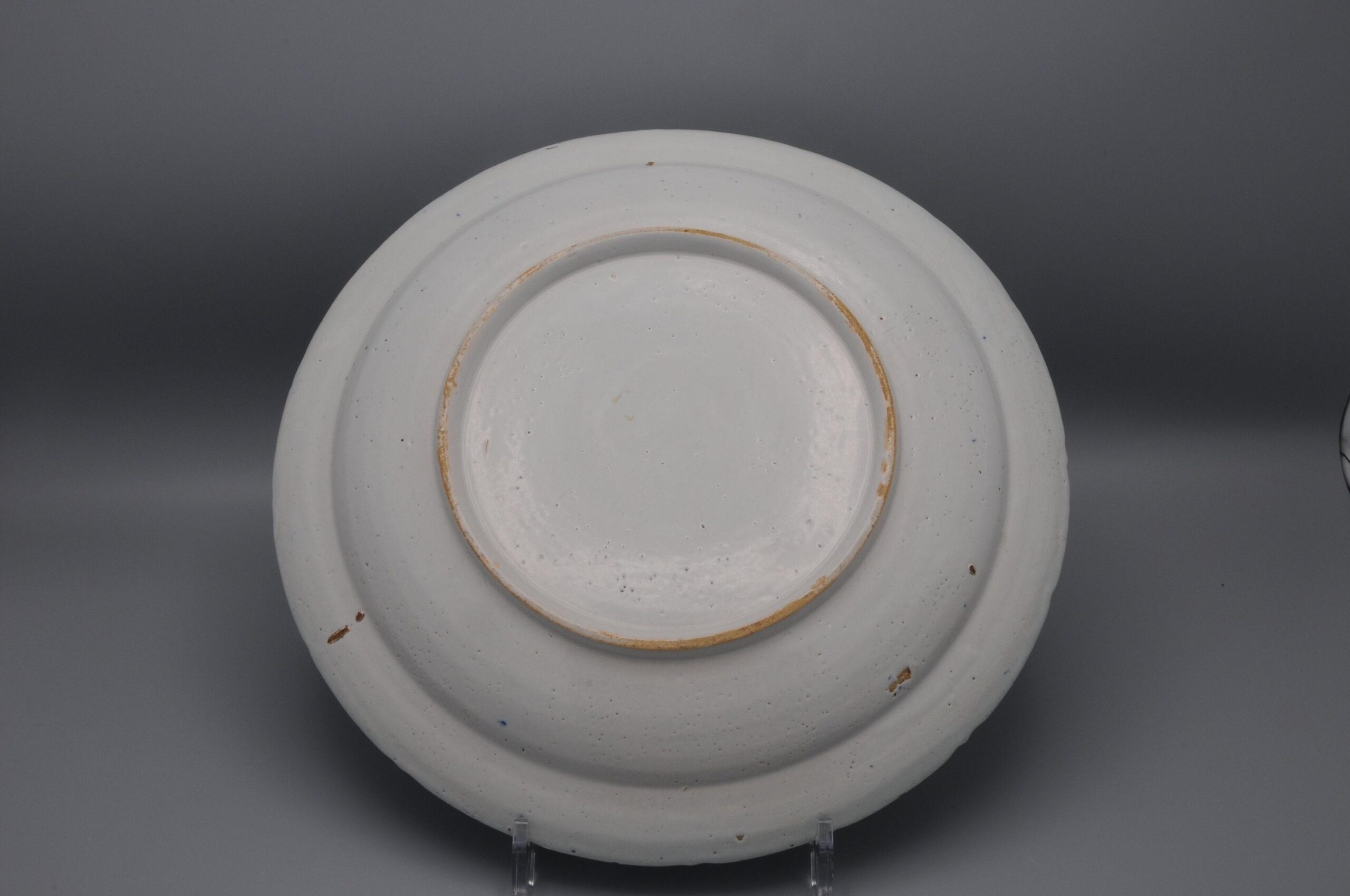Rare early 18th century Blue Delftware platter with Daniel Marot style decoration of bird and insects amidst flowers and foliage.