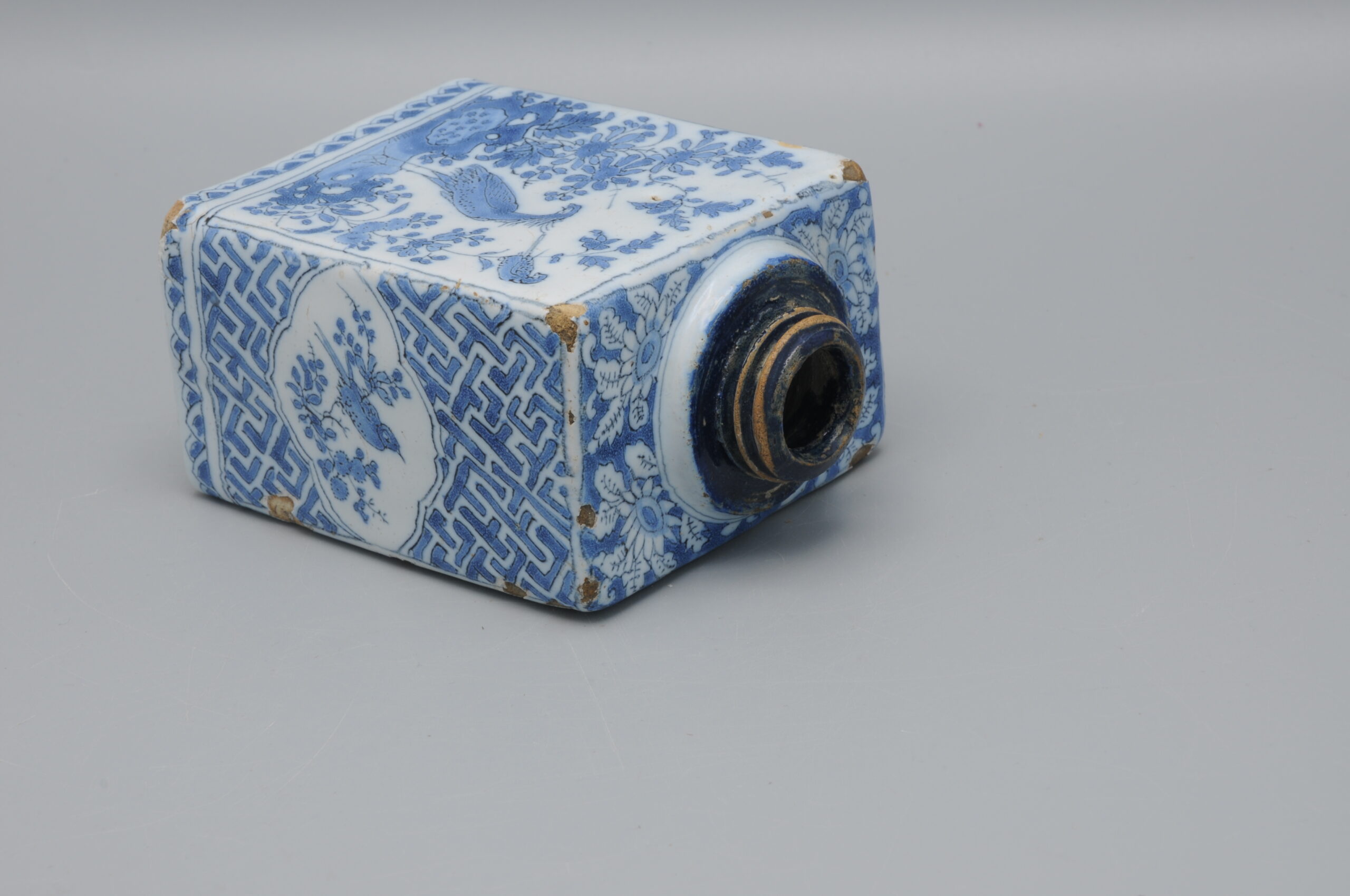 Marked: AK, for Adrianus Kocx, who owned the Delft factory De Grieksche A from 1687 to 1701. De Grieksche A was a prominent Delftware factory renowned for its high-quality tin-glazed earthenware, often producing pieces in the popular Chinoiserie style influenced by imported Chinese porcelain. Kocx is documented as a leading figure in Delft production at the turn of the 18th century, and marked pieces from his workshop are rare and highly sought after by collectors.