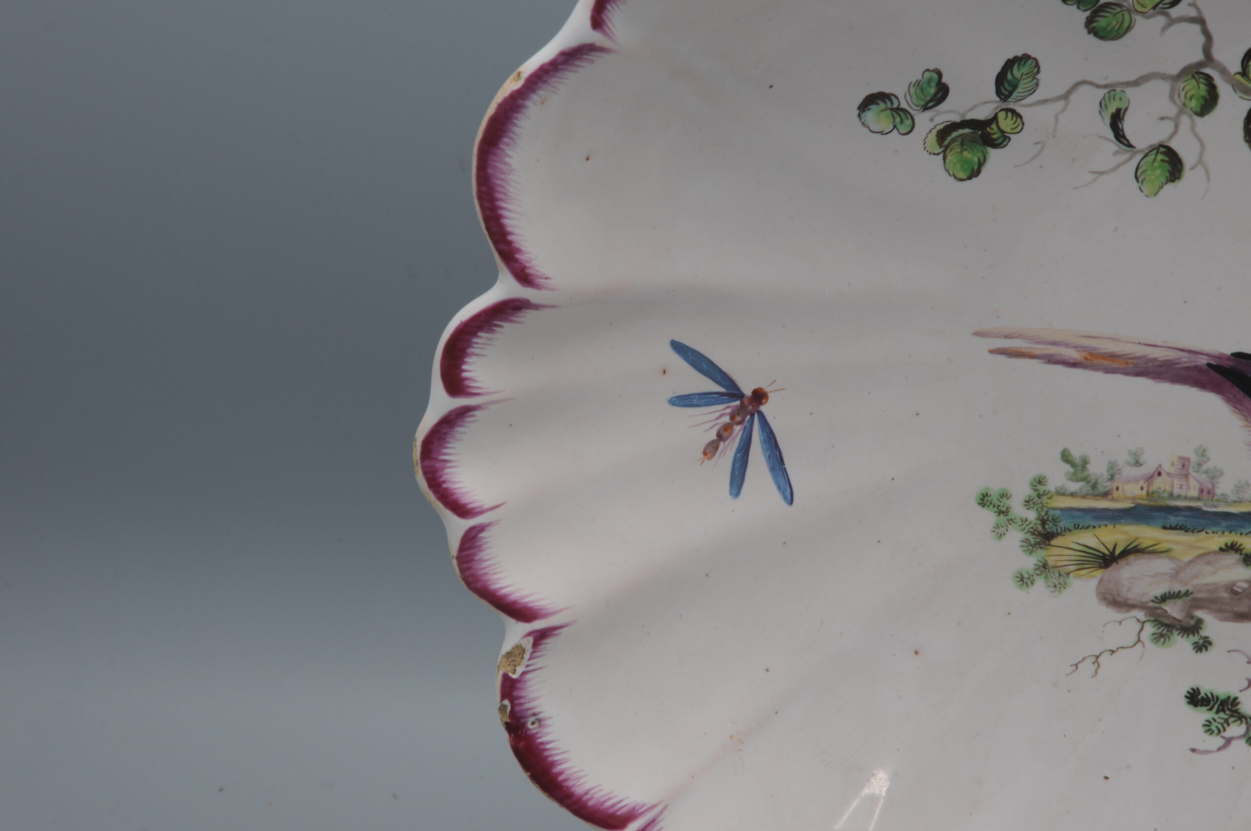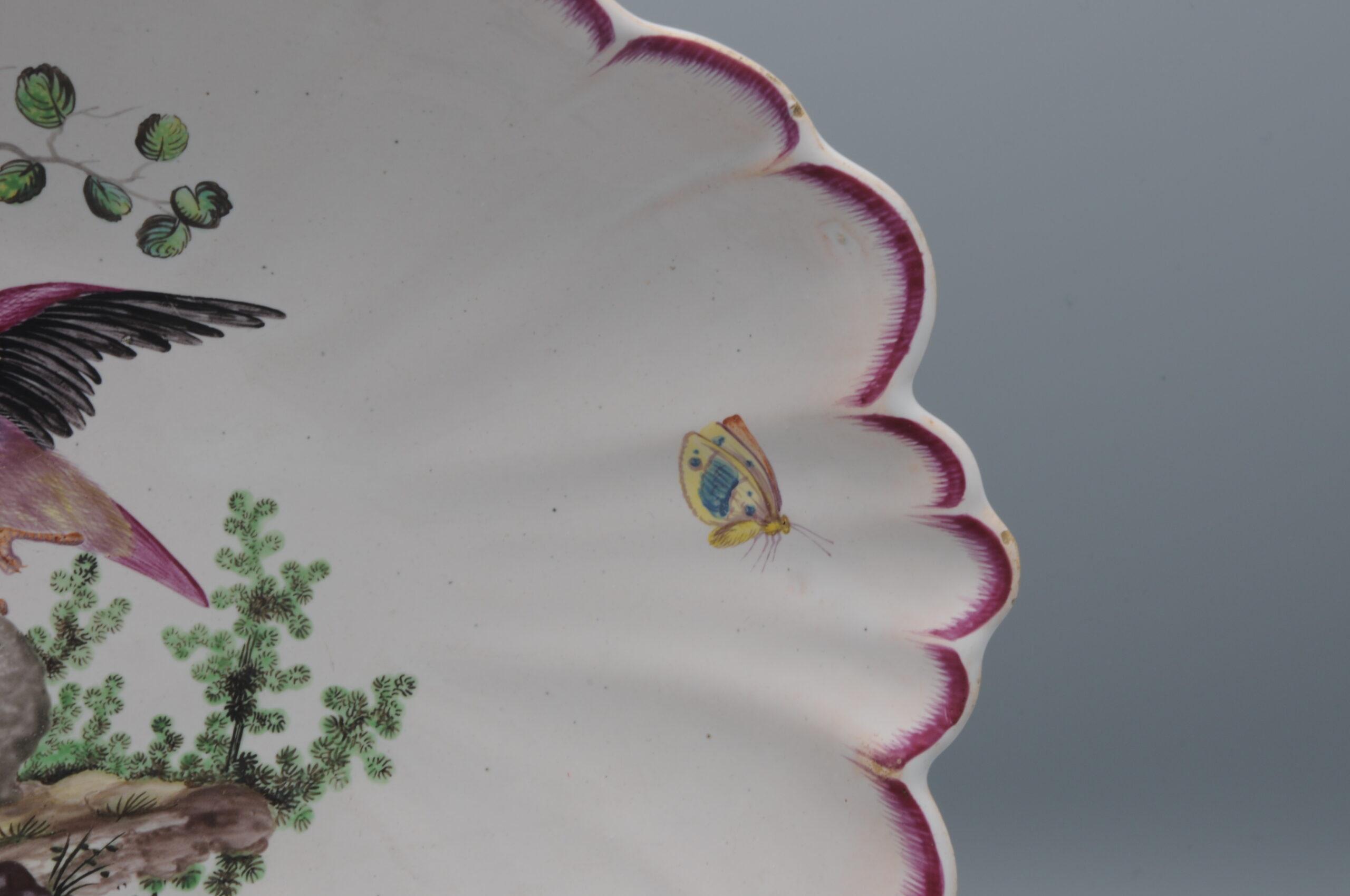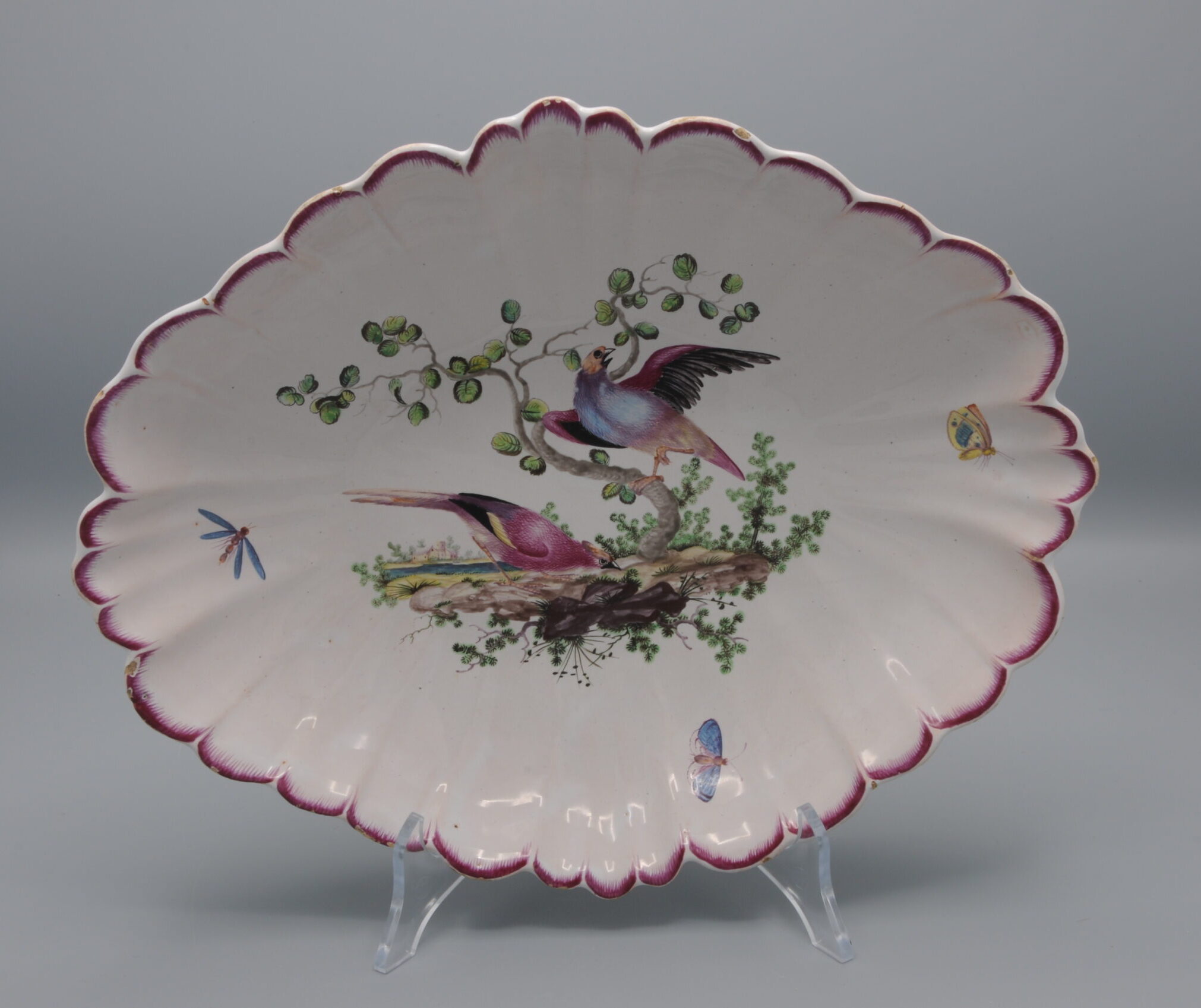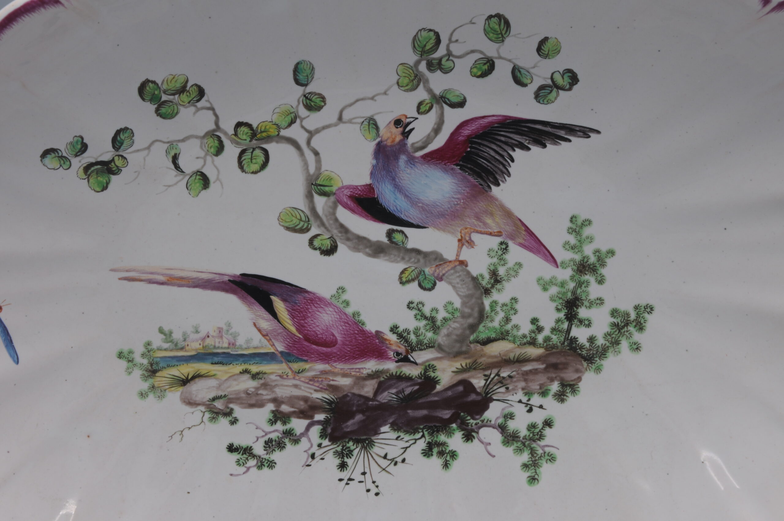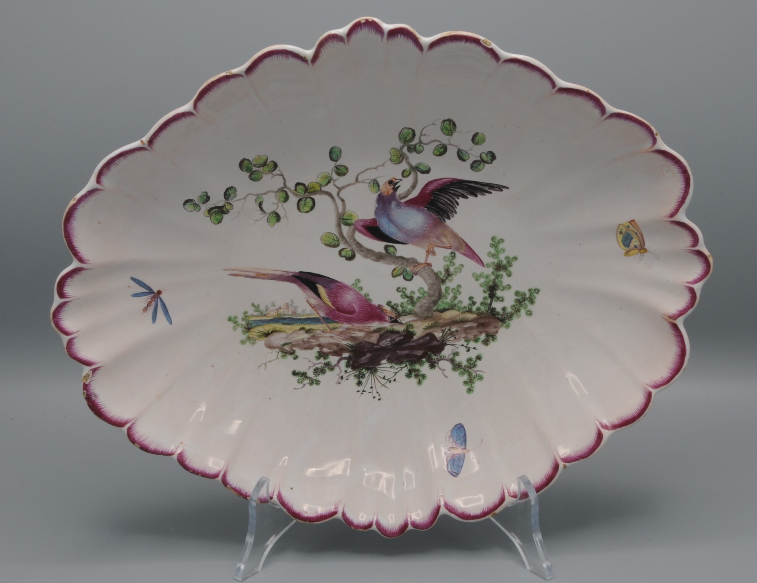 An Aprey faience oval dish from the 18th century, finely decorated with birds.
