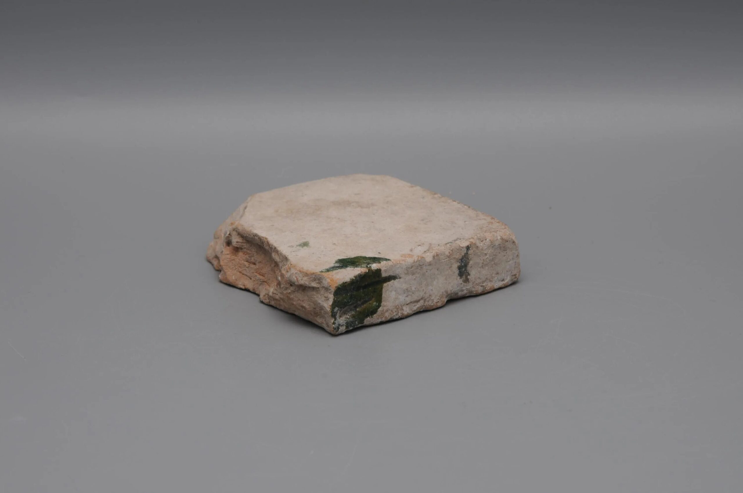 This small tile is a so-called olambrilla. They were used in flooring or pavements and to cover baseboards for decorative use, combined with rectangular unglazed red tiles.