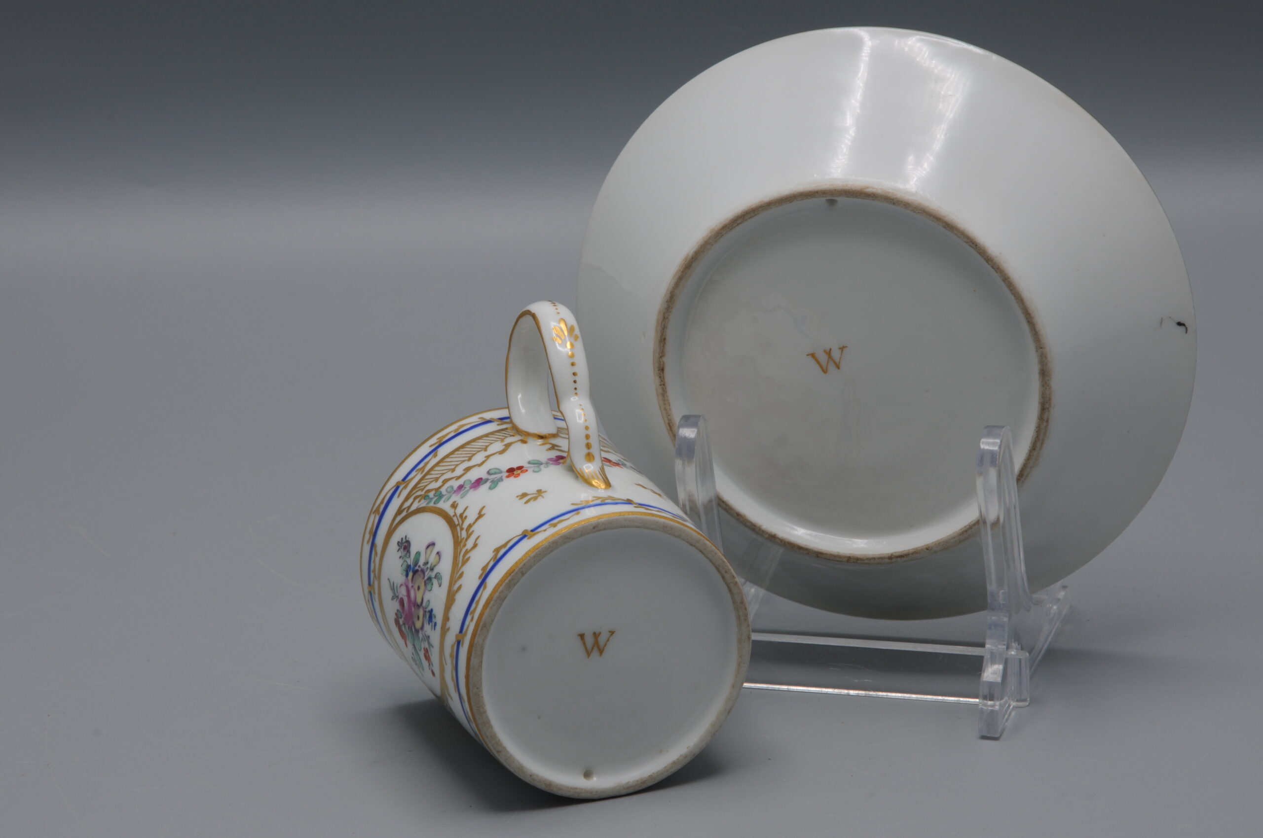 Underside signed with a gilt W. unknow mark, but most likely Paris. 1790-1800