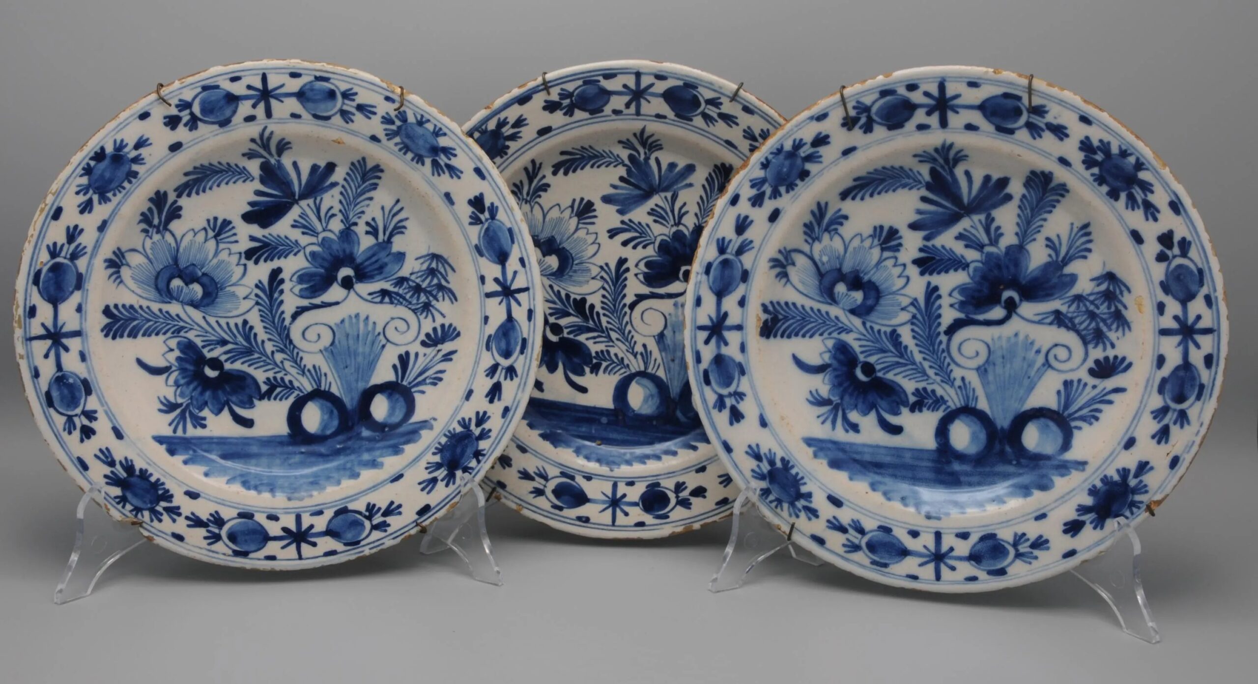 Delft Blue and White – set of 3 ‘Boerendelft’ plates – early 19th century