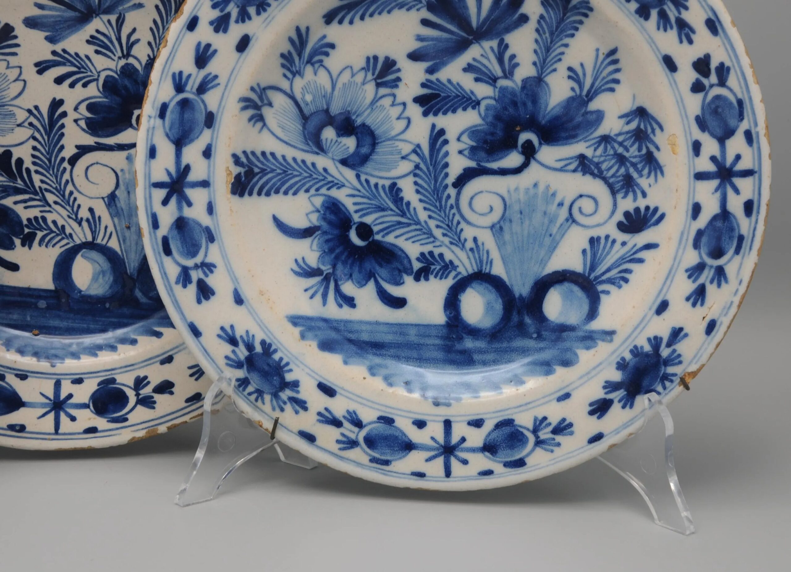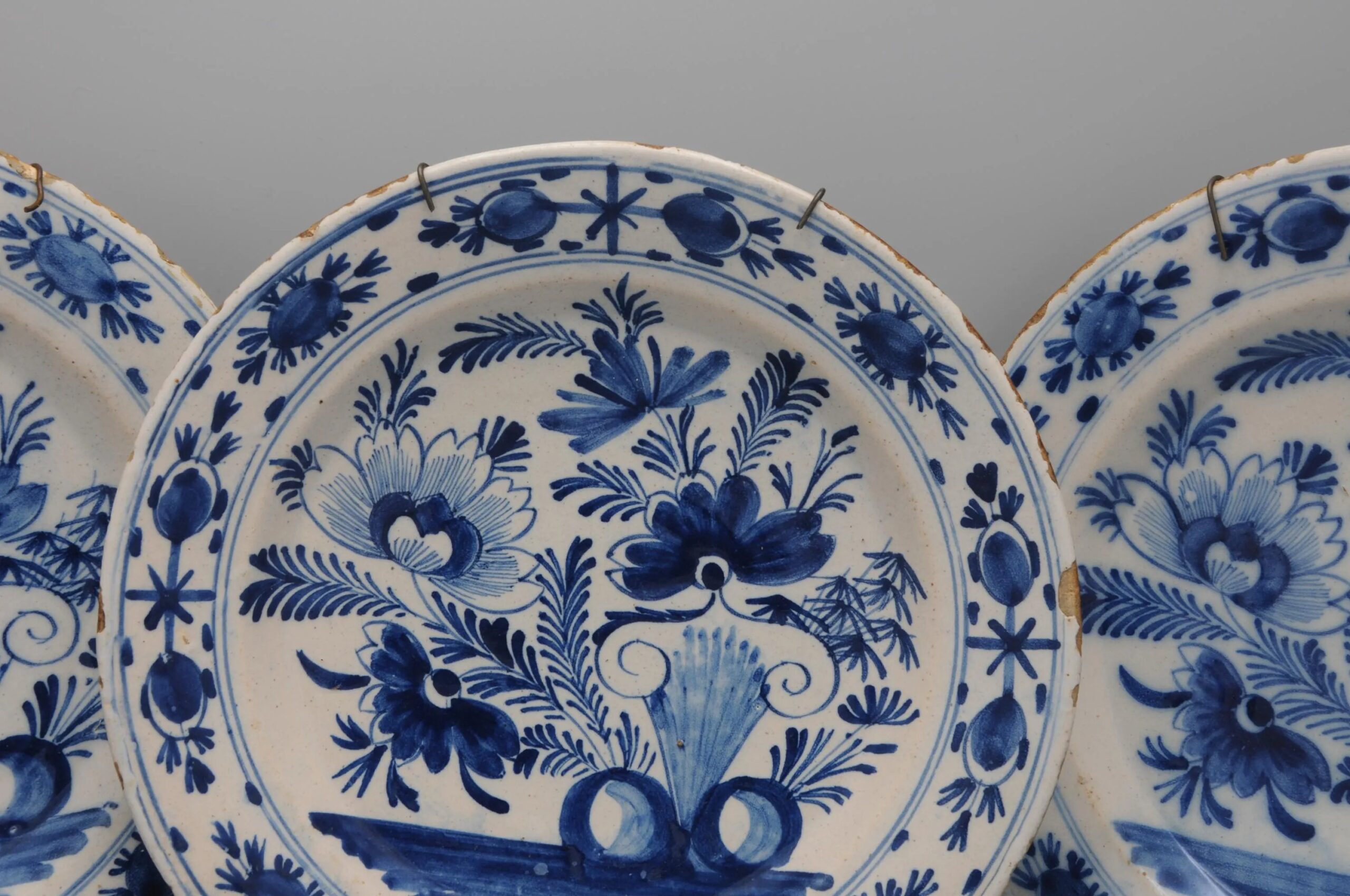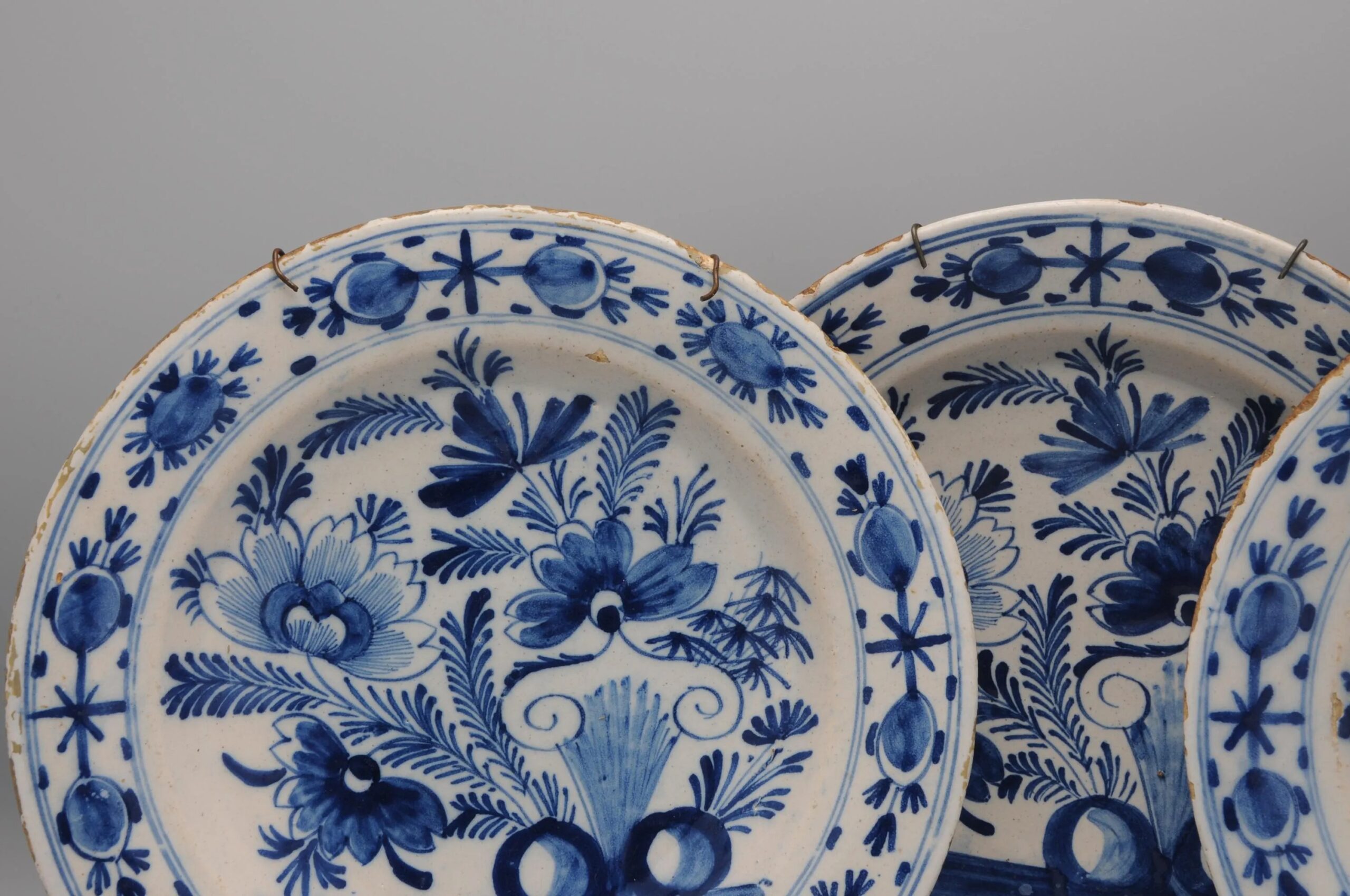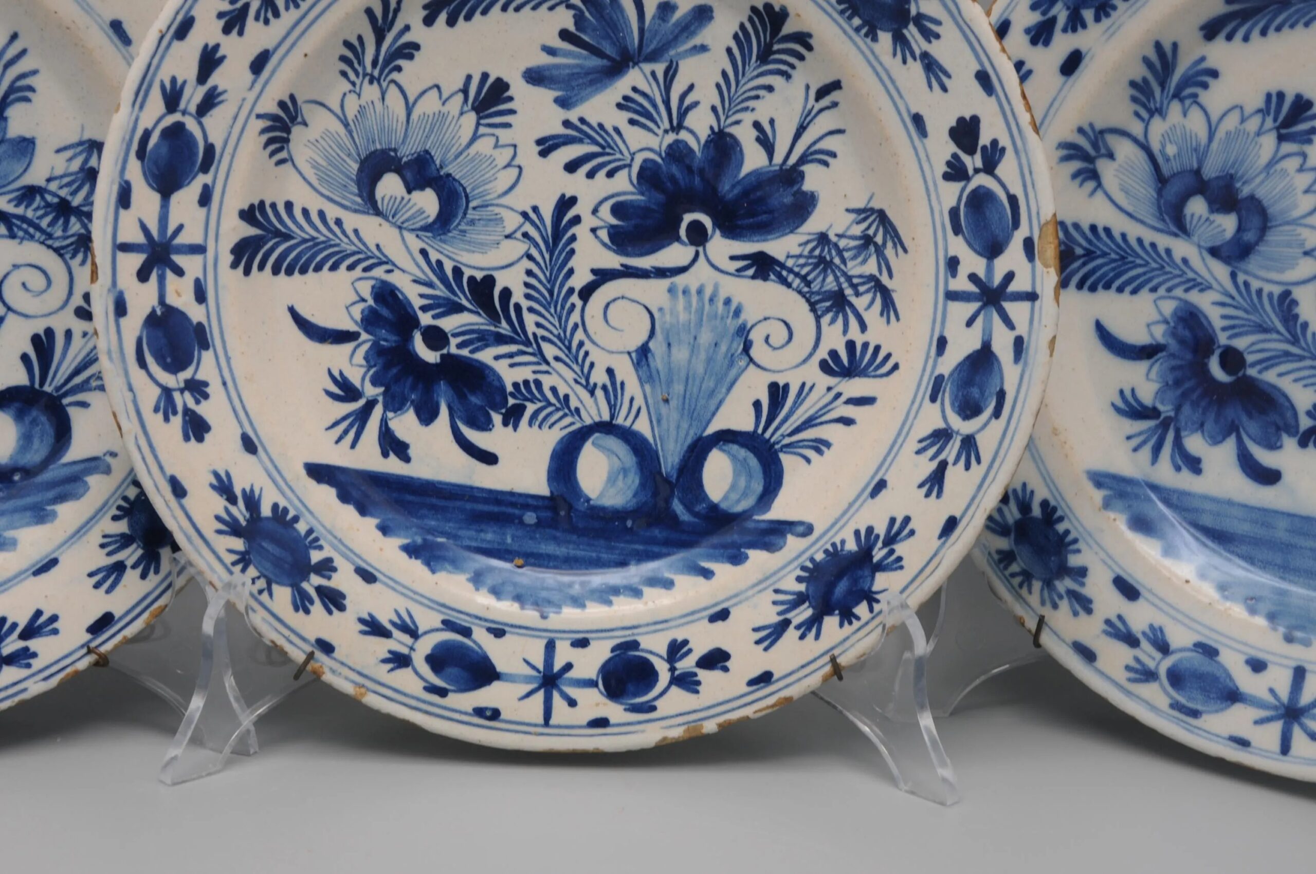Set of 3 ‘Boerendelft’ Blue and White floral plates decorated with stylized flowers. Early 19th century