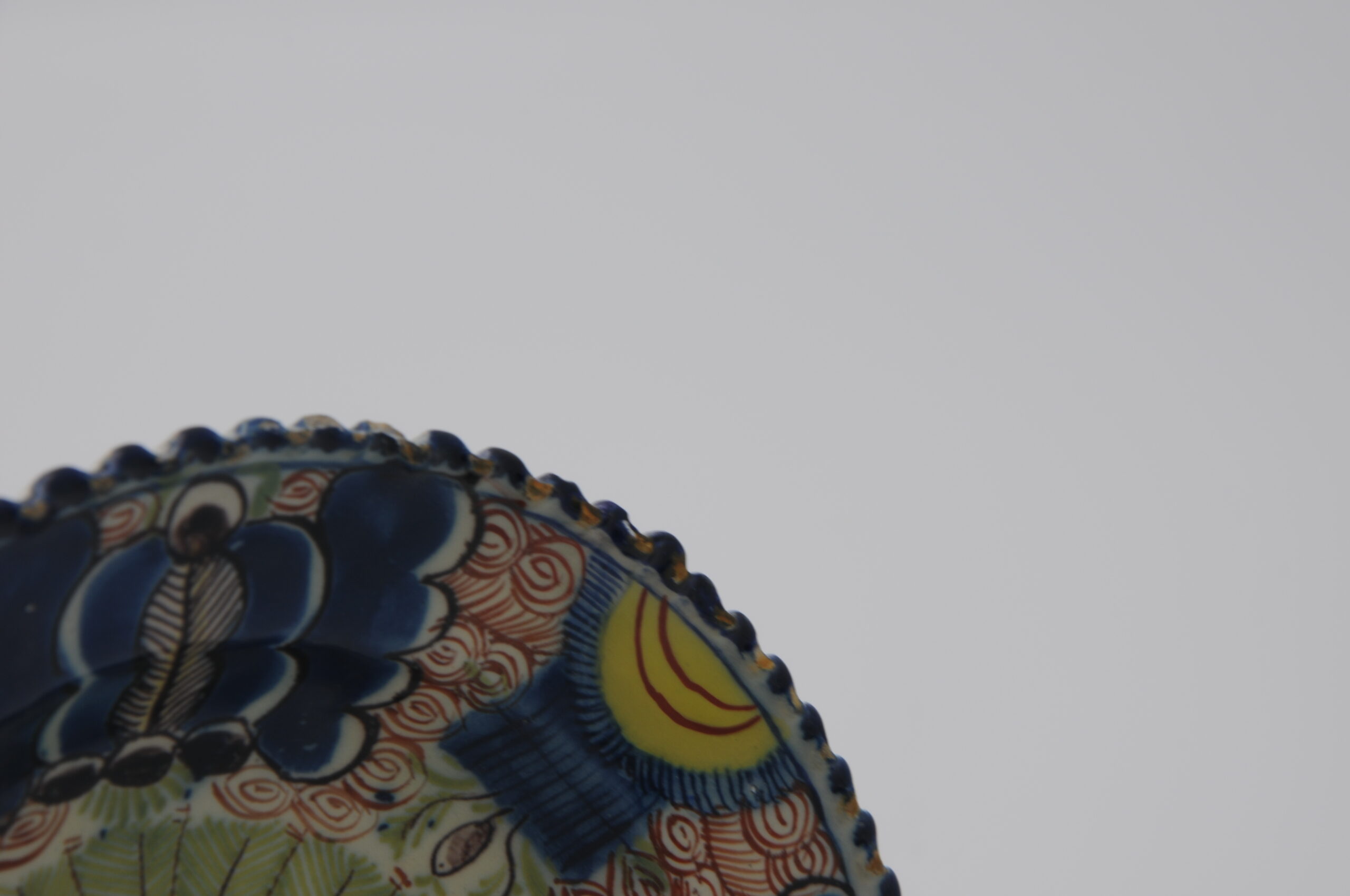 The ‘Peacock’ motif (“pauwenstaart”) is a recurring decorative element in antique Dutch ceramics, commonly found on large Delft plates and chargers intended for display. The design reflects the influence of Chinese export porcelain on Dutch Delftware, integrating Chinese-inspired elements into Rococo Delft and other contemporary decorative styles.