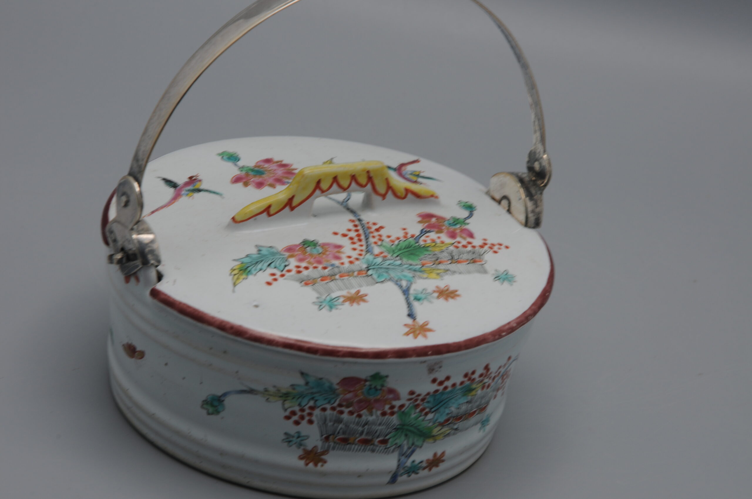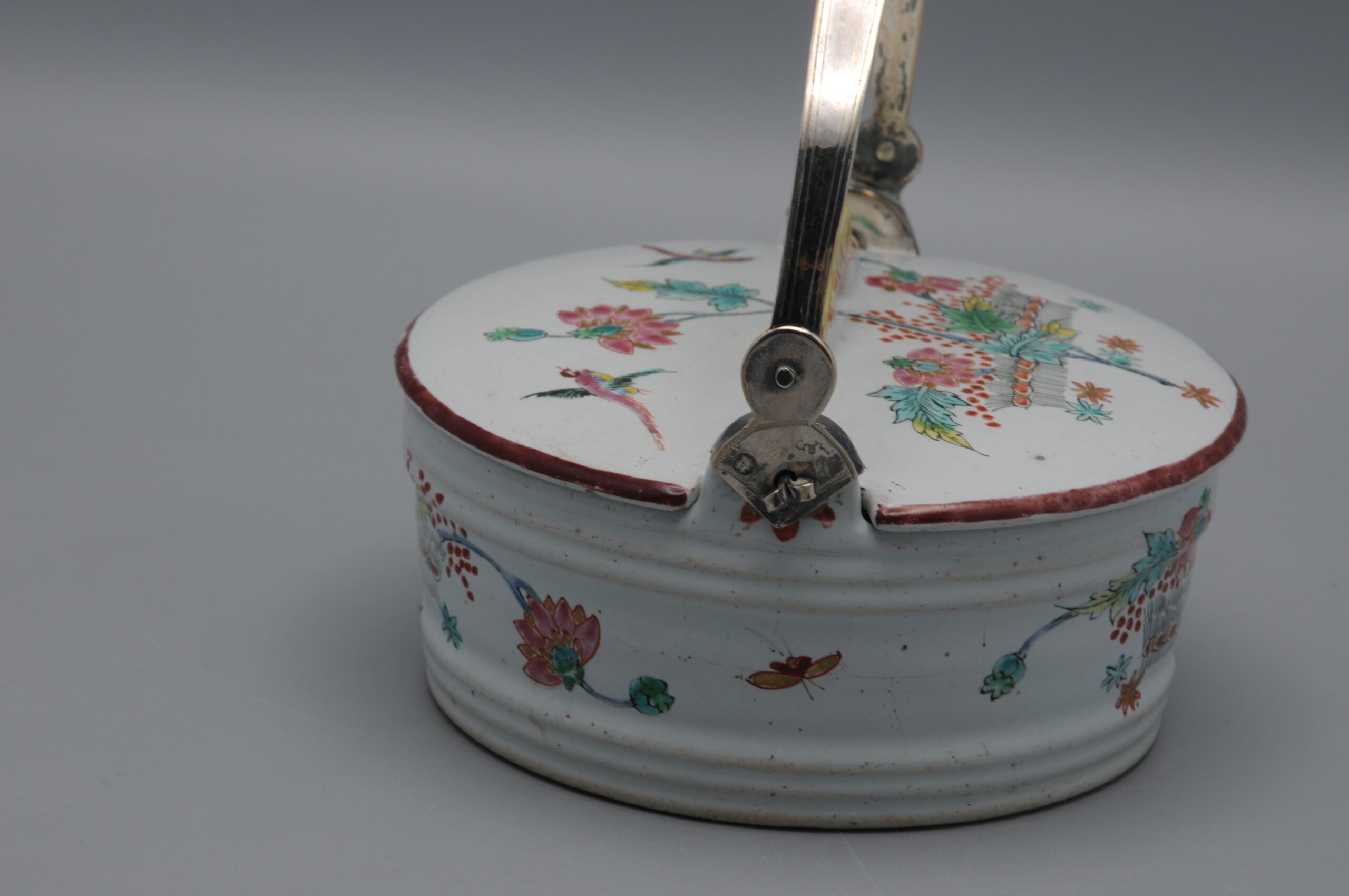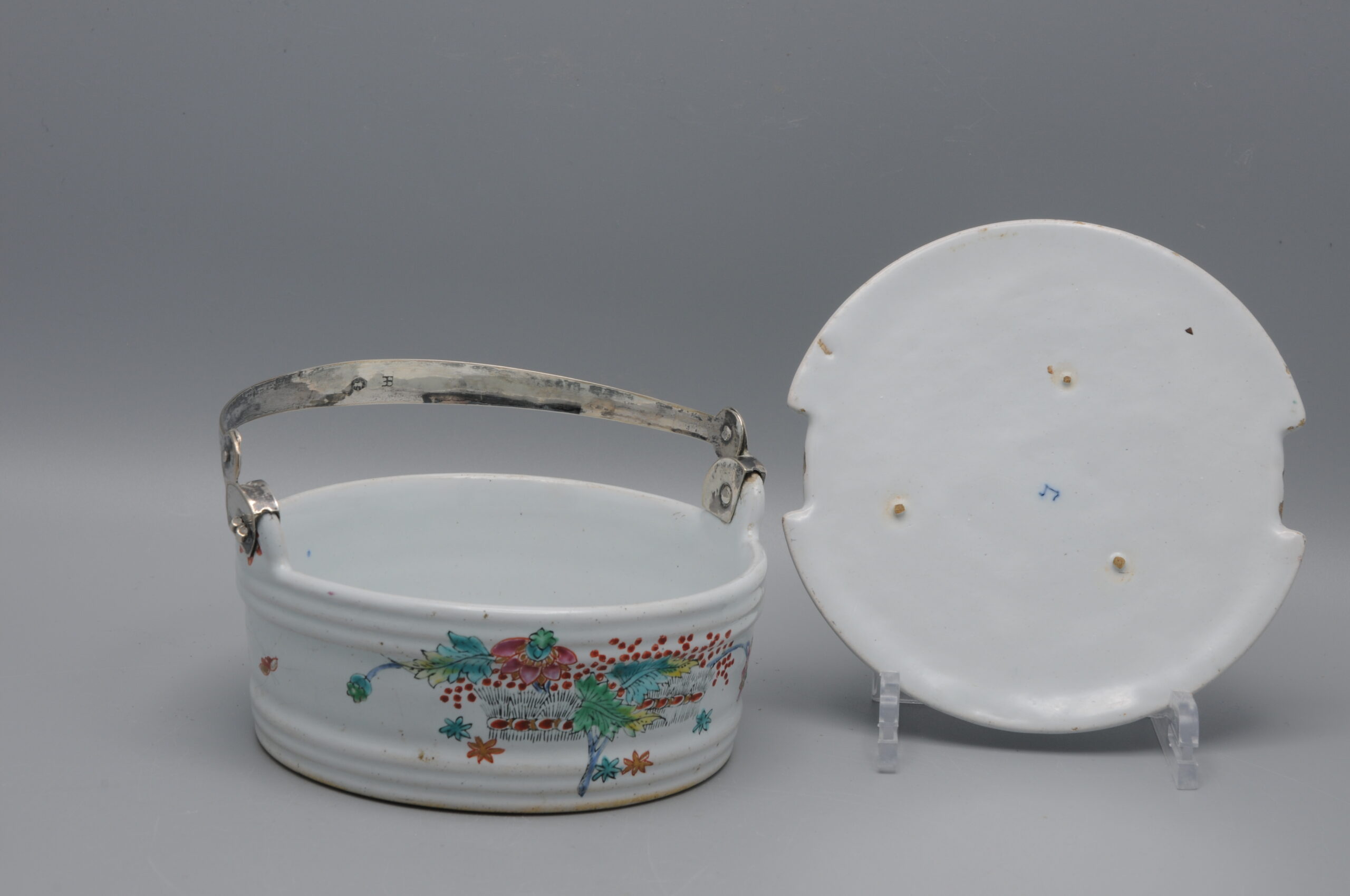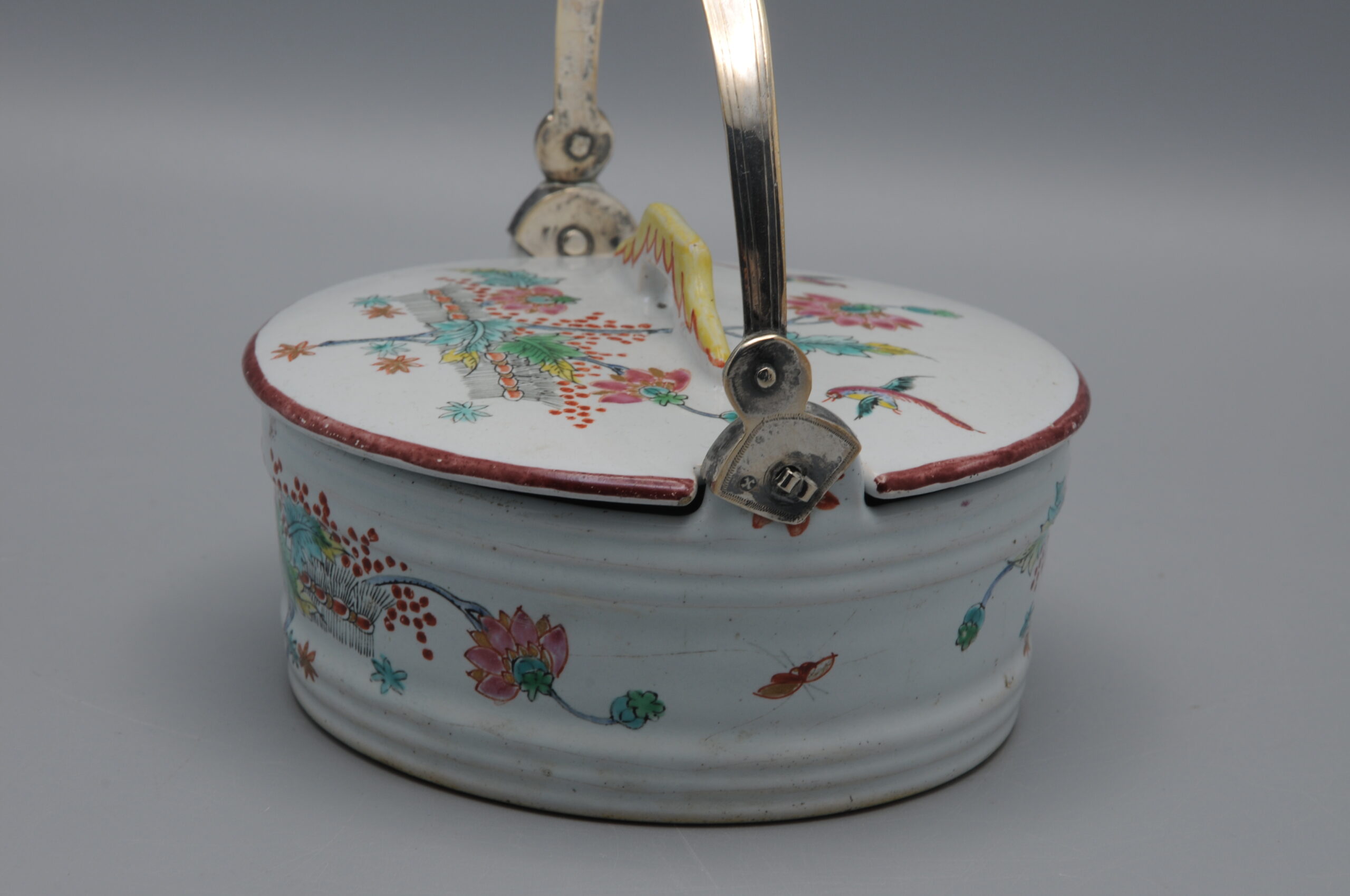 Fitted with a later silver swing handle, hallmarked for Dutch 2nd standard silver (833/1000), dated 1882, most likely Jan Bouwknegt. Butter dishes of this type were originally not outfitted with handles, but this 19th century addition enhances it nicely.