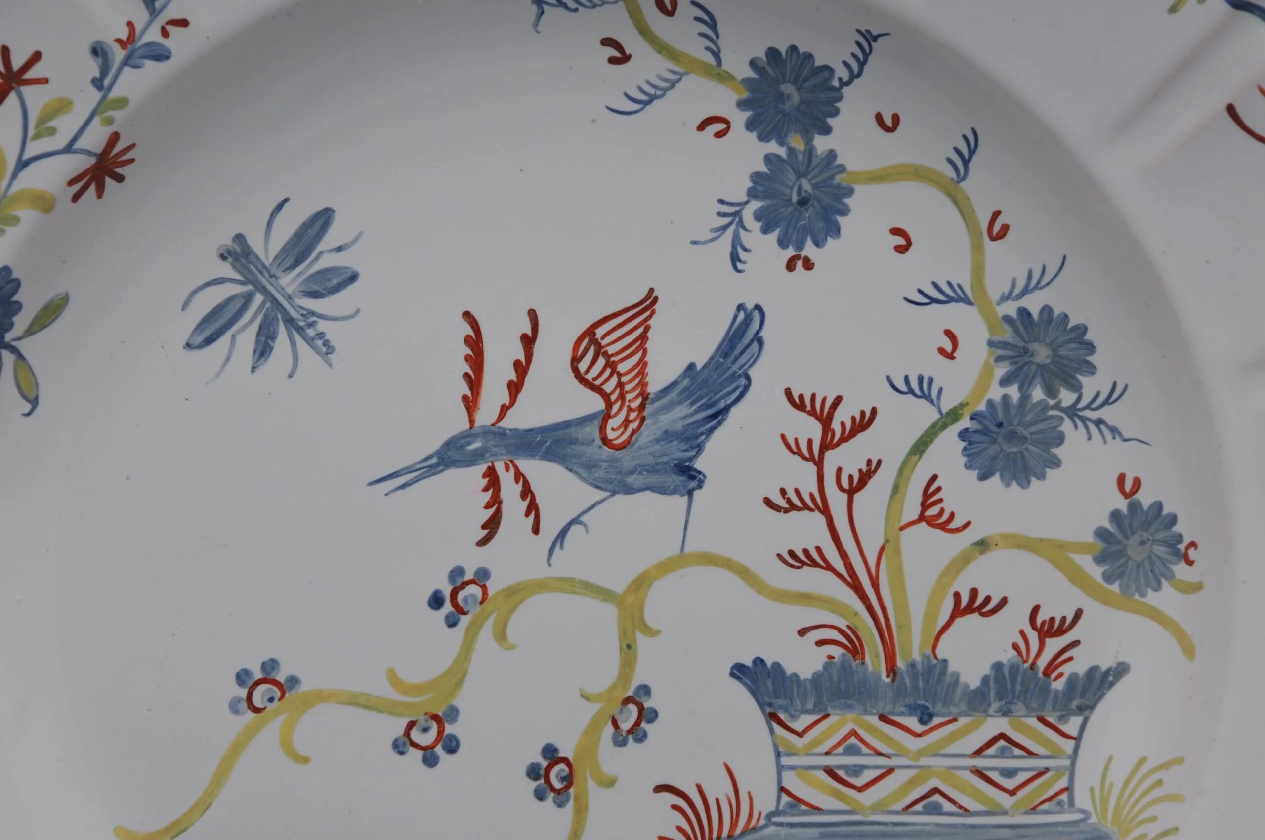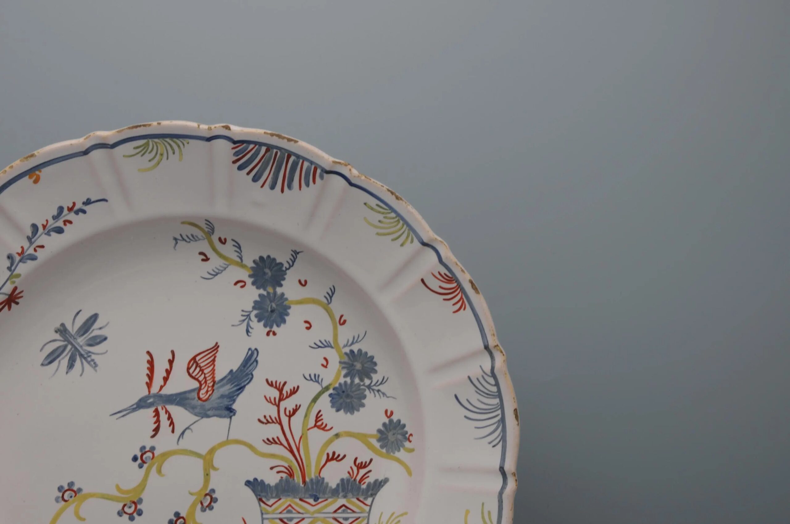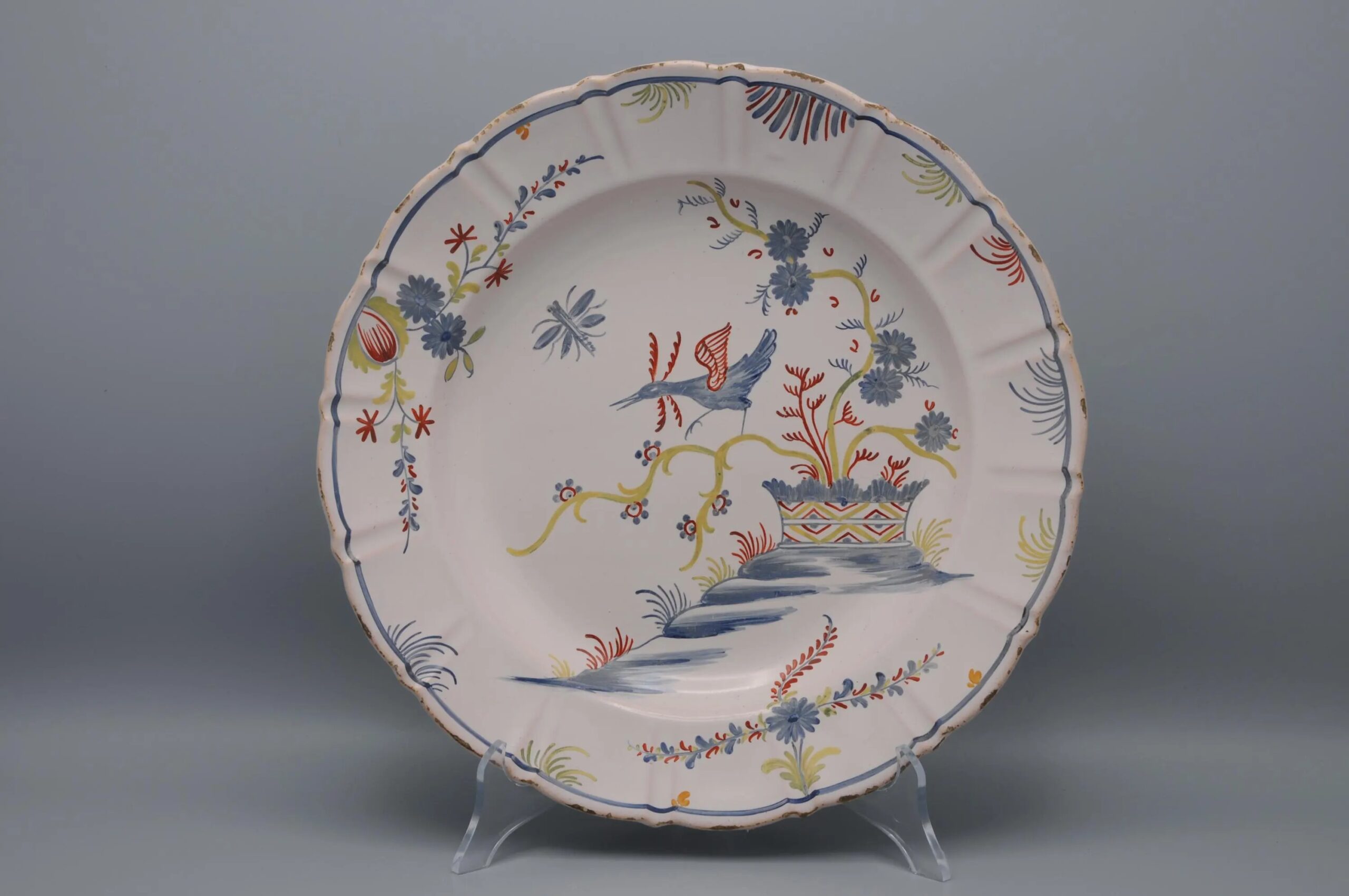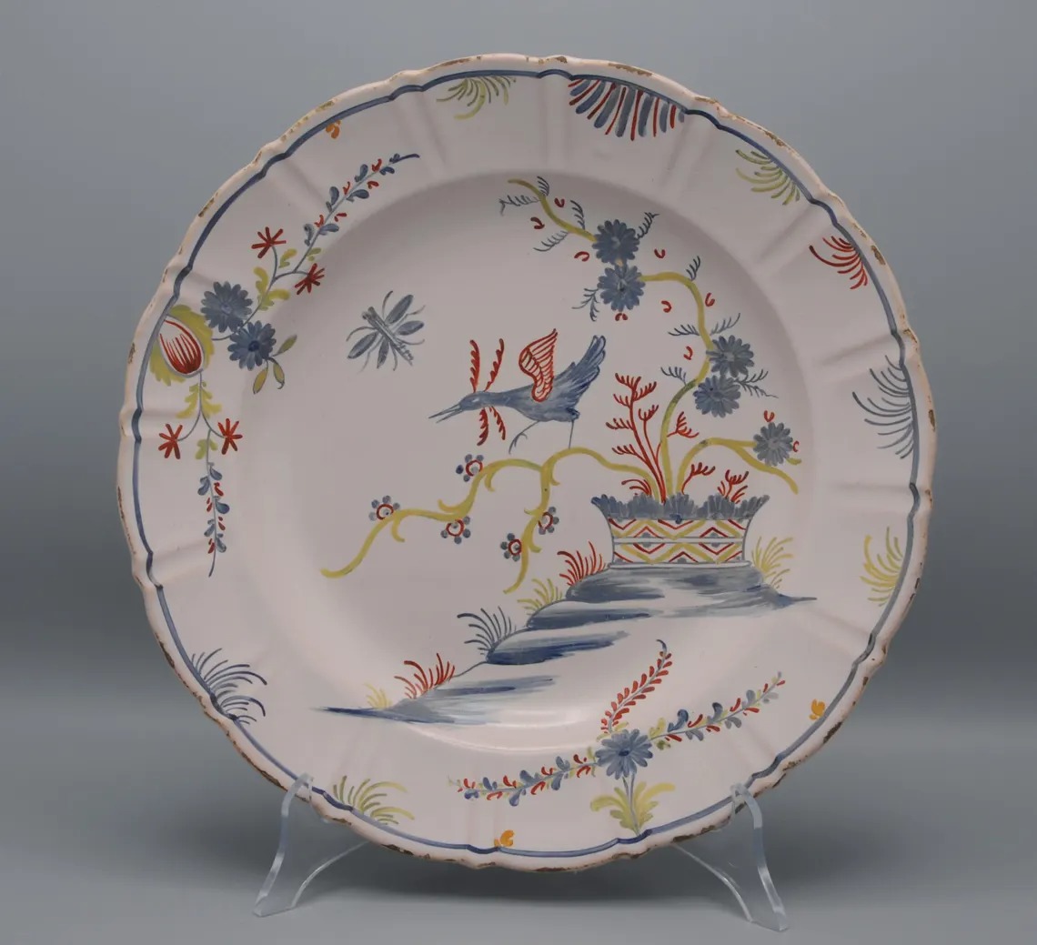 Nevers. Earthenware plate with polychrome decoration of a bird, 18th century