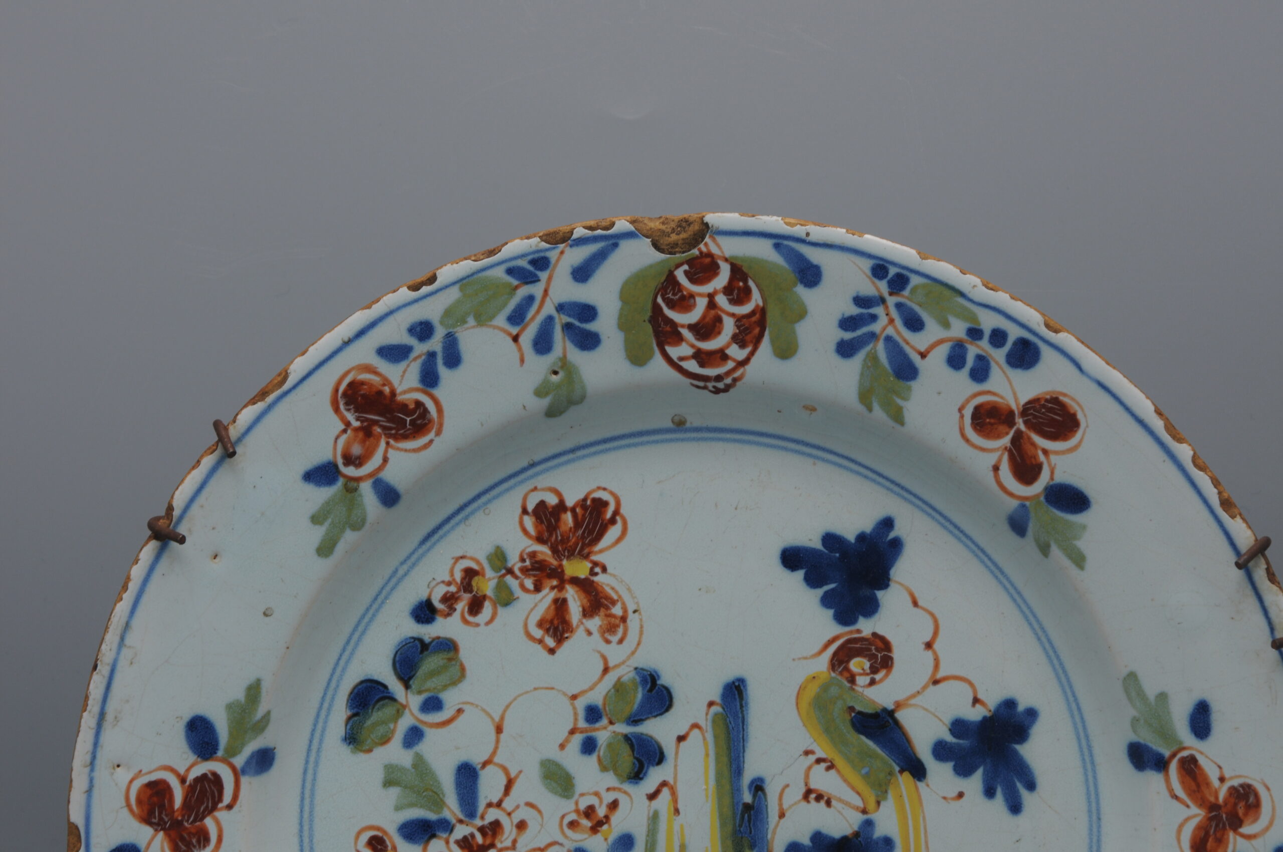 Lambeth London – English Delftware Parrot Plate, mid 18th century