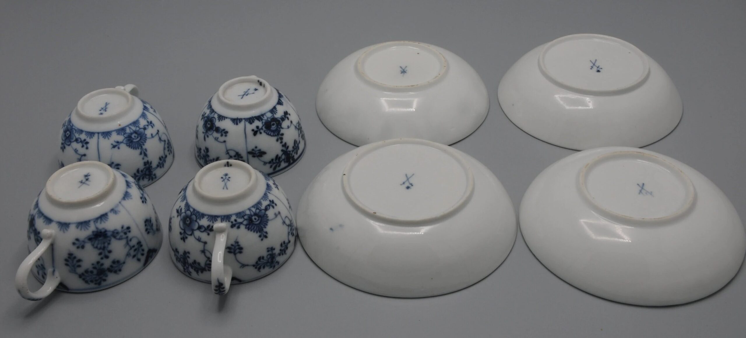 All underglaze marked with crossed swords and an asterisk, Marcolini period 1774-1814.