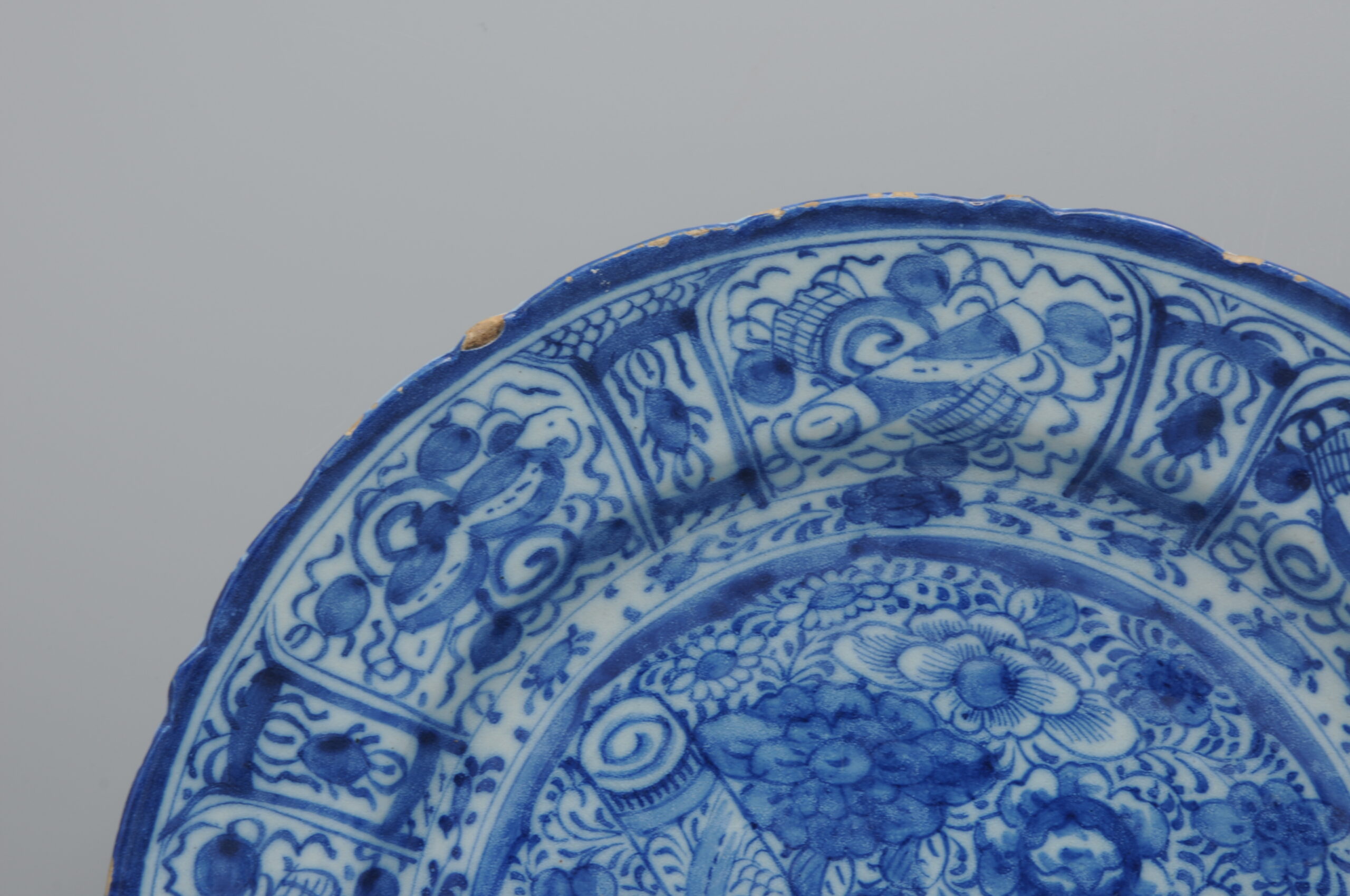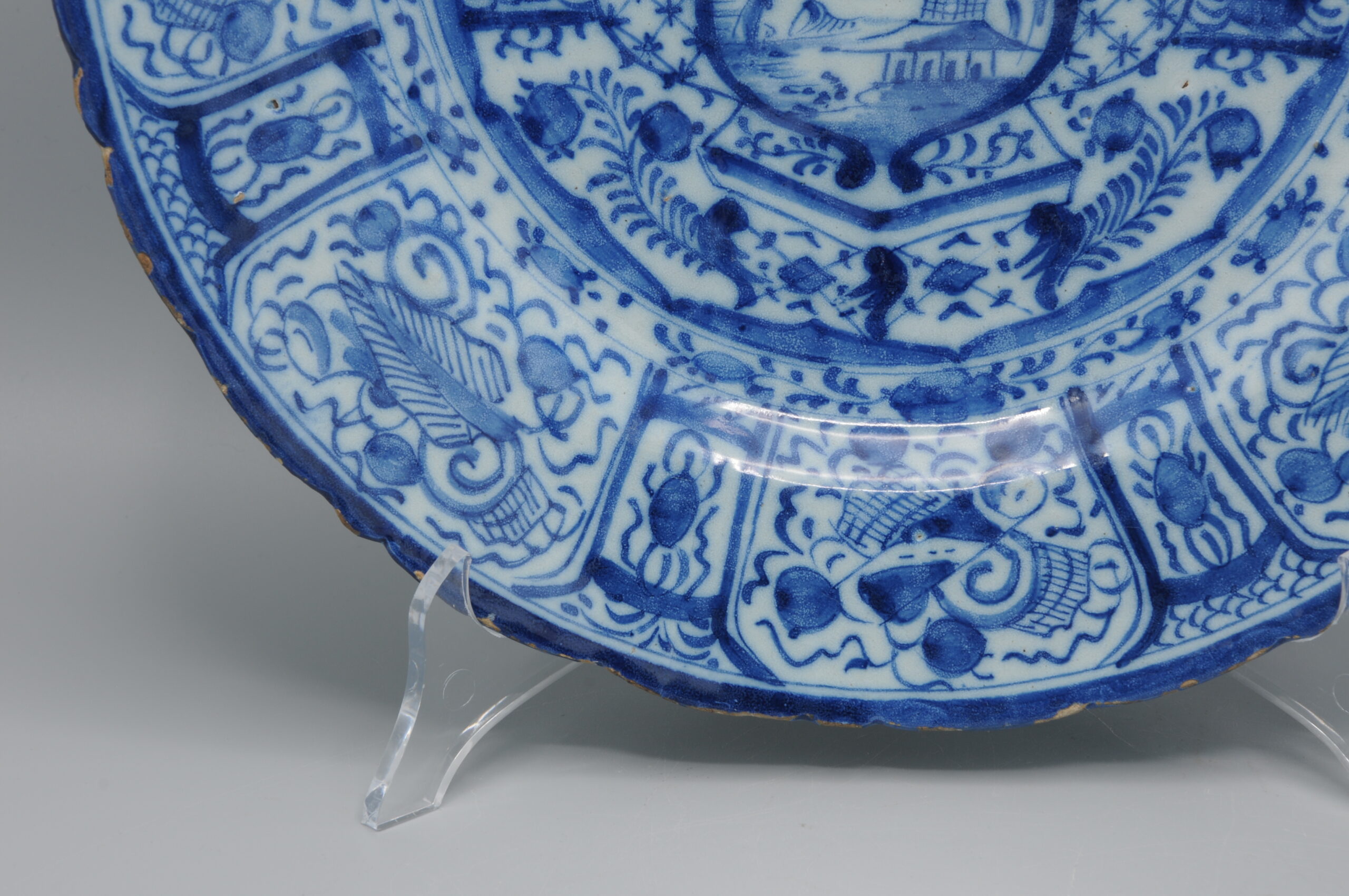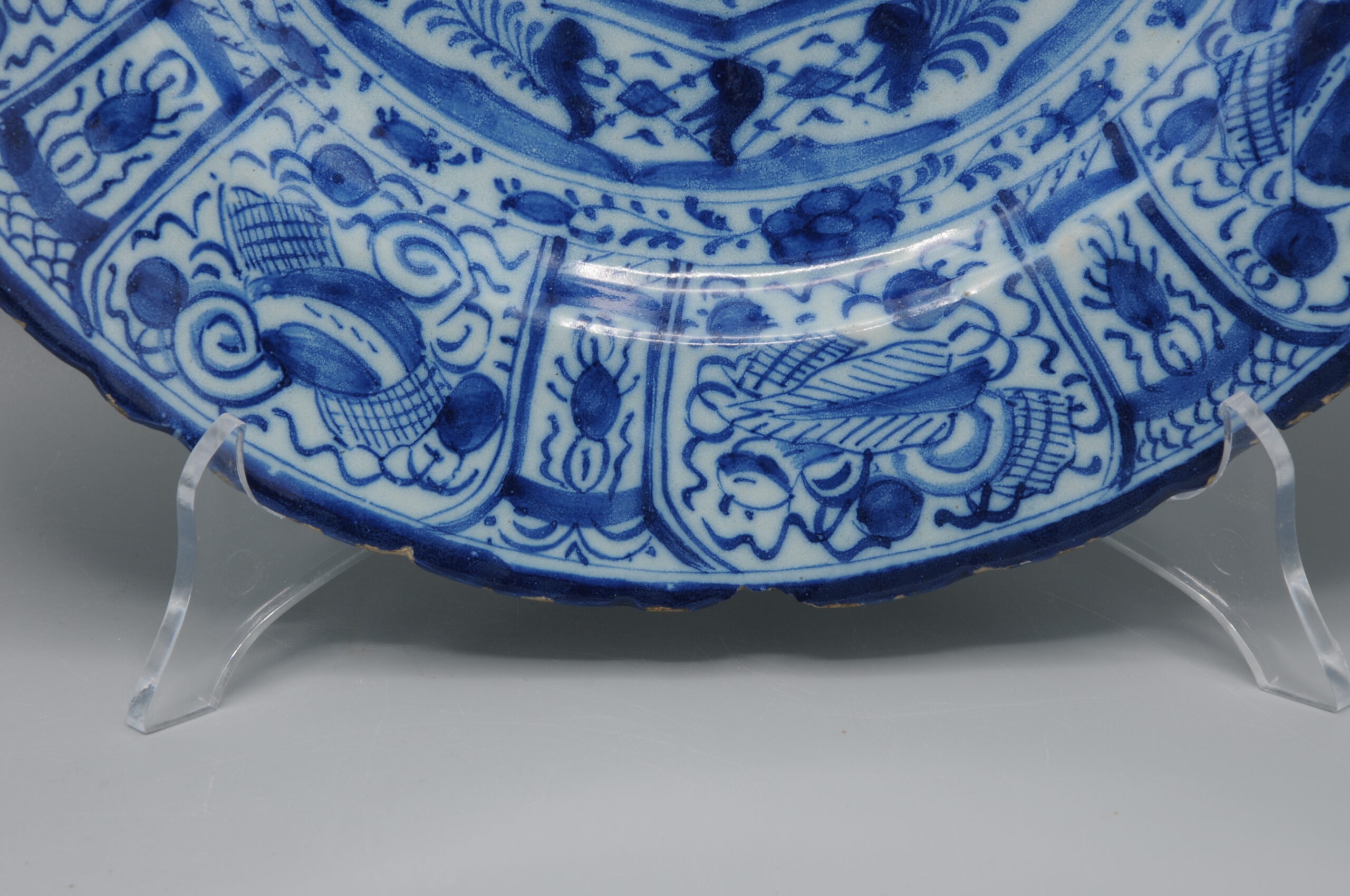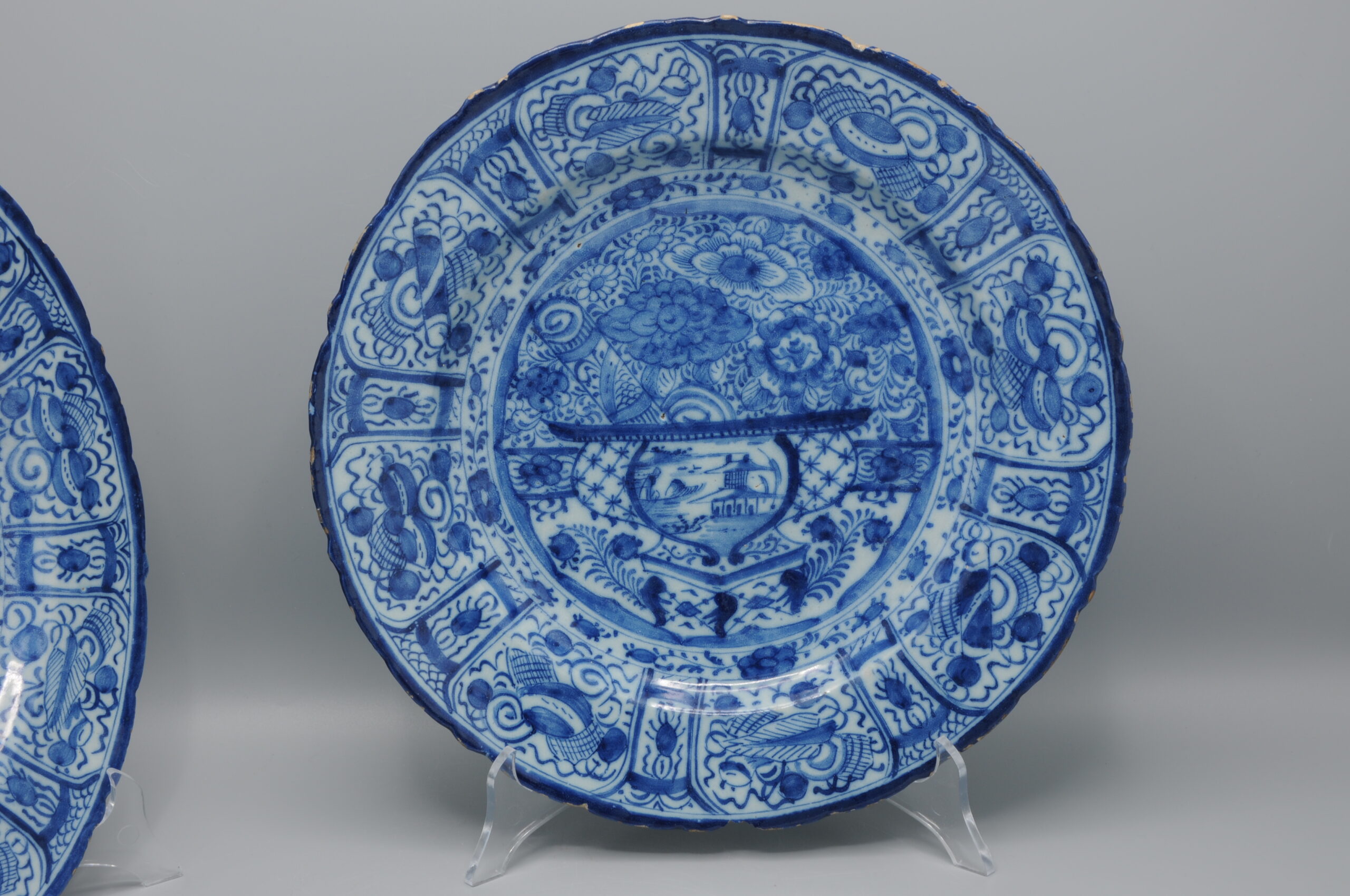 These plates exemplify the European adaptation of Chinese decorative symbolism in mid-18th century Delftware.
