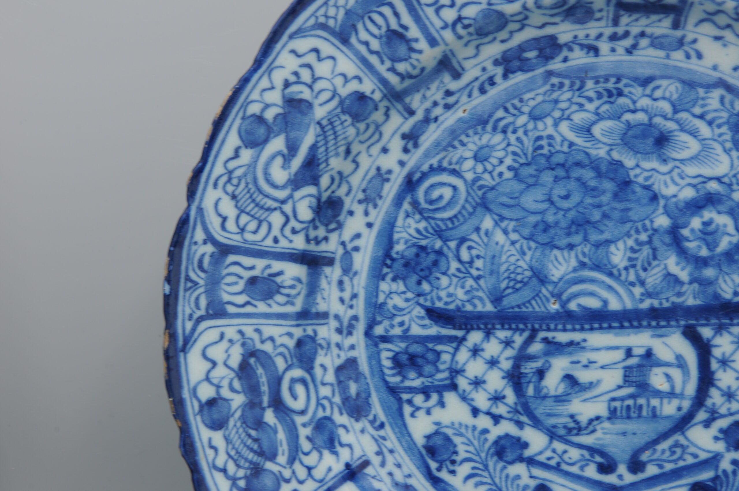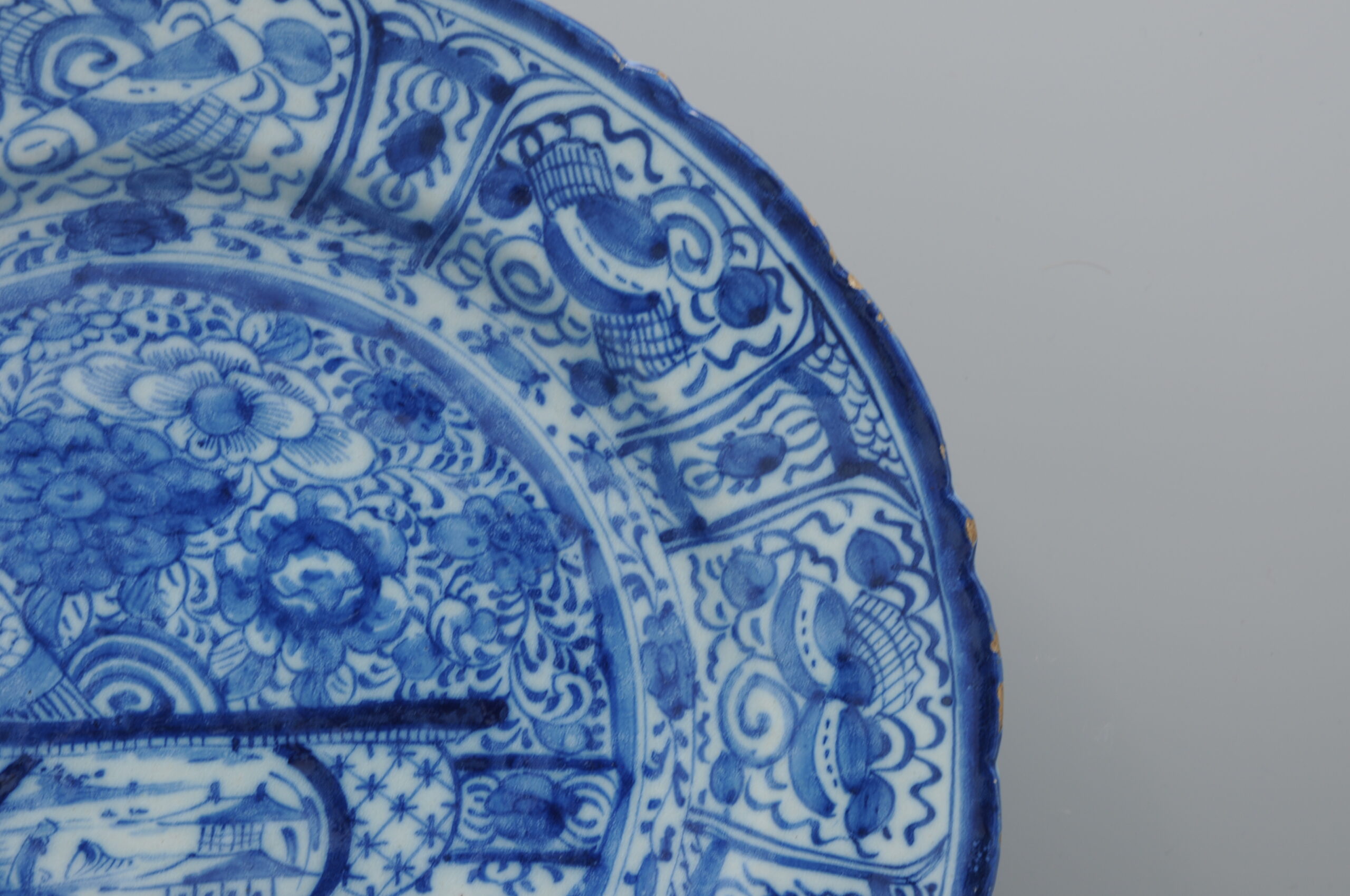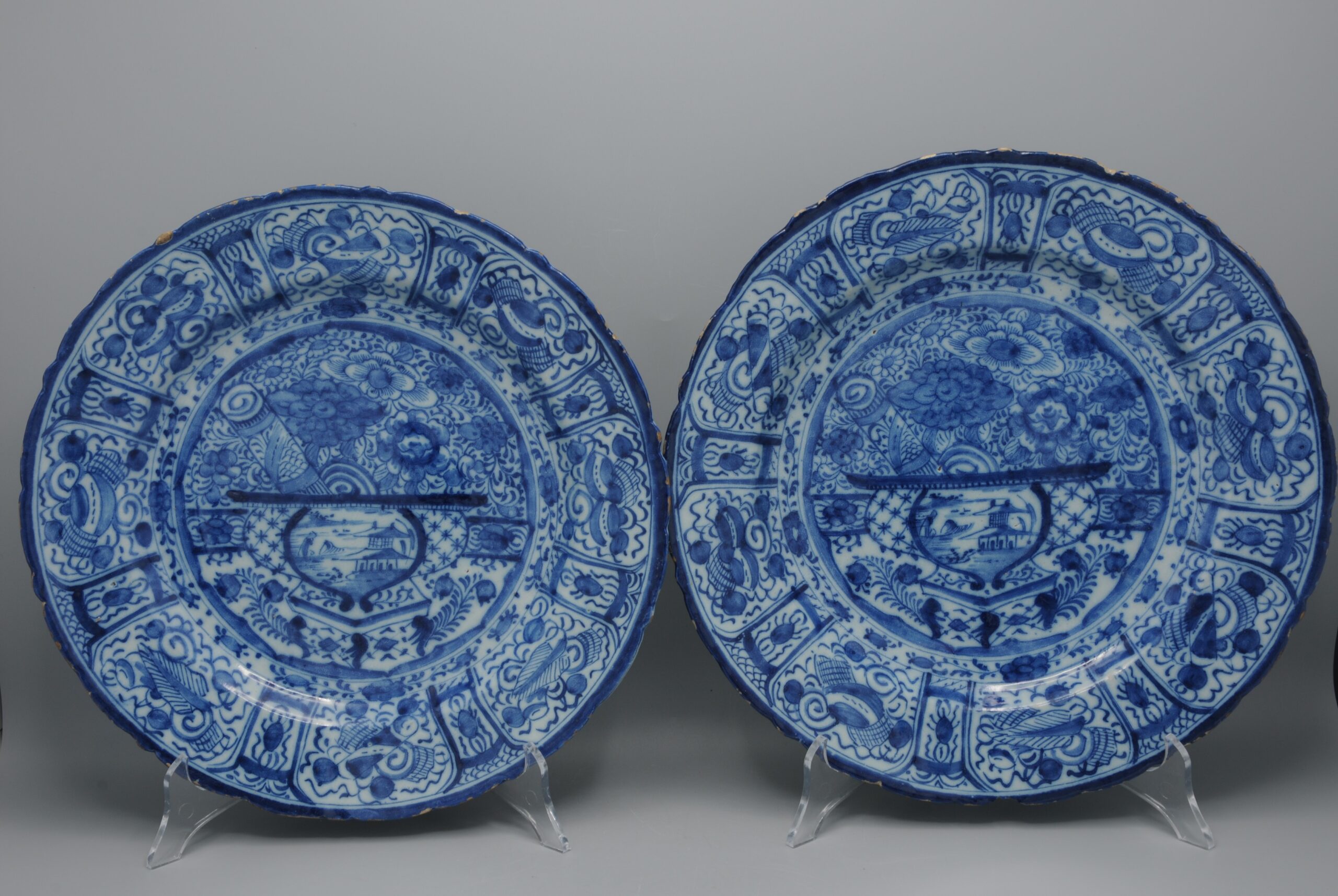 Pair of Delft blue ‘Chinoiserie’ chargers – 18th century, by ‘De Lampetkan’, Delft