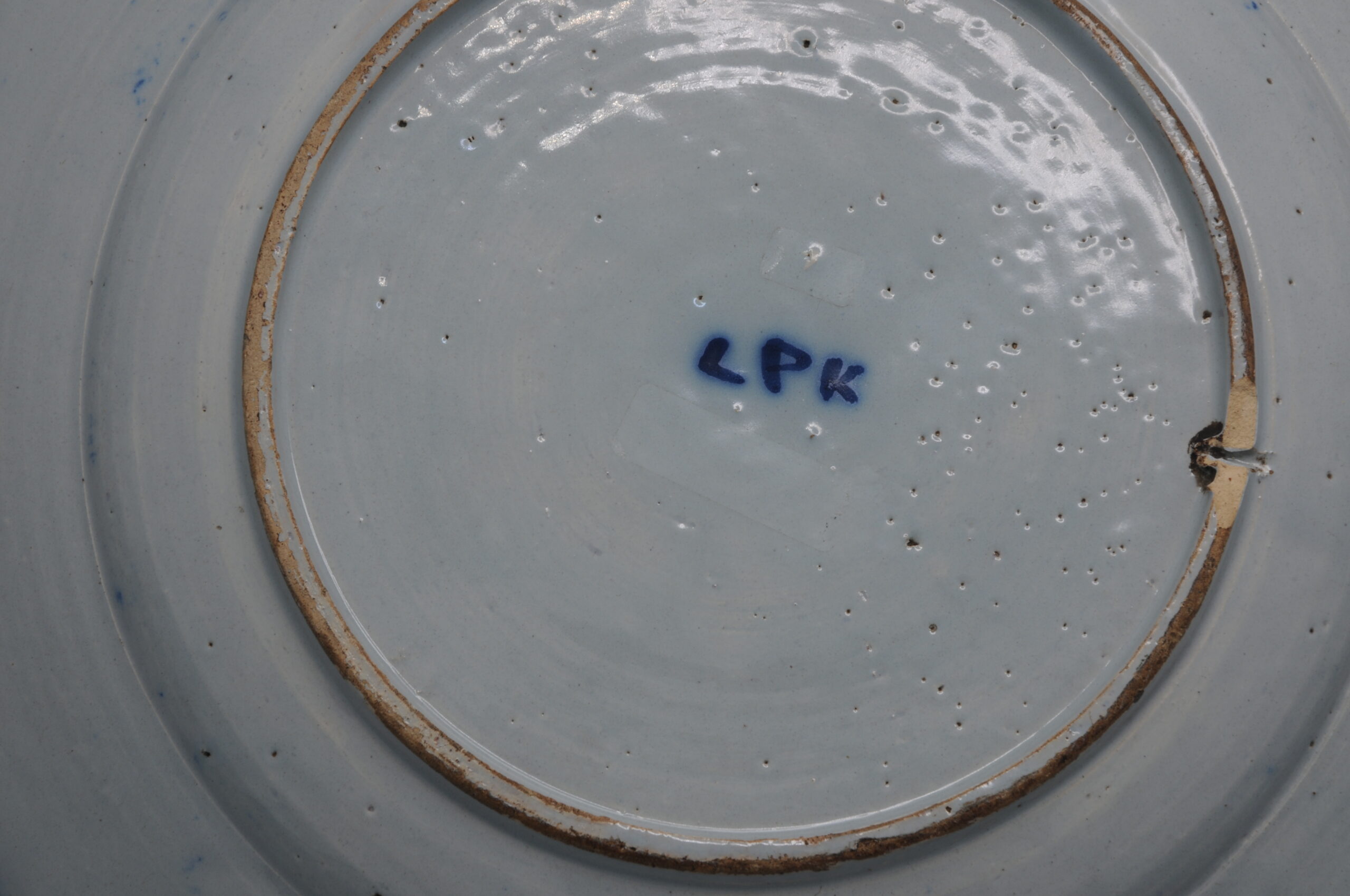 Marked LPK in underglaze blue mark for De Porceleyne Lampetkan factory. Founded in 1609 the factory operated until 1811.