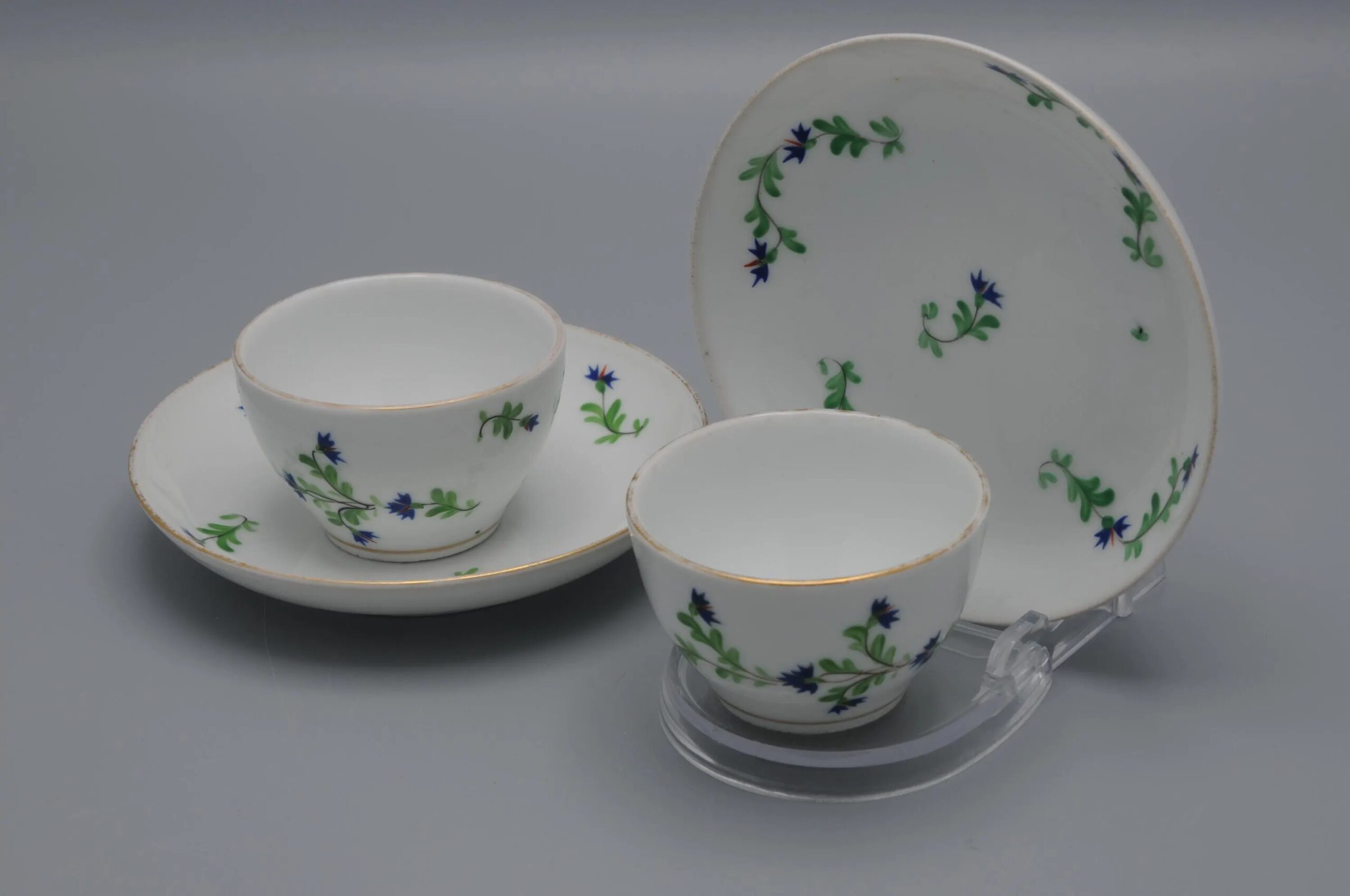 These simple but sophisticated cups and saucers are not only a pleasure in the collectors cabinet, but are well surprisingly usable as the porcelain is quite think and strong.