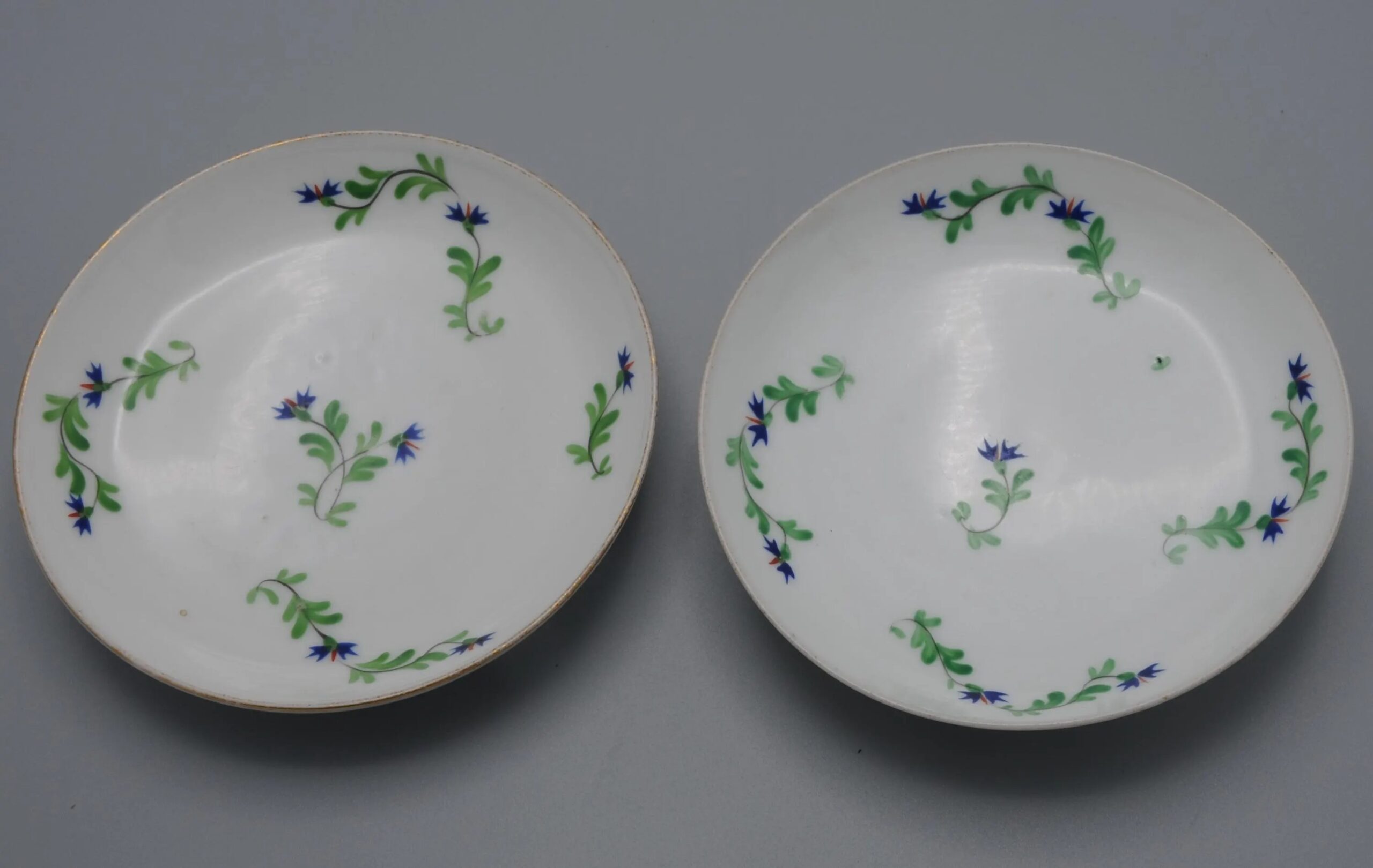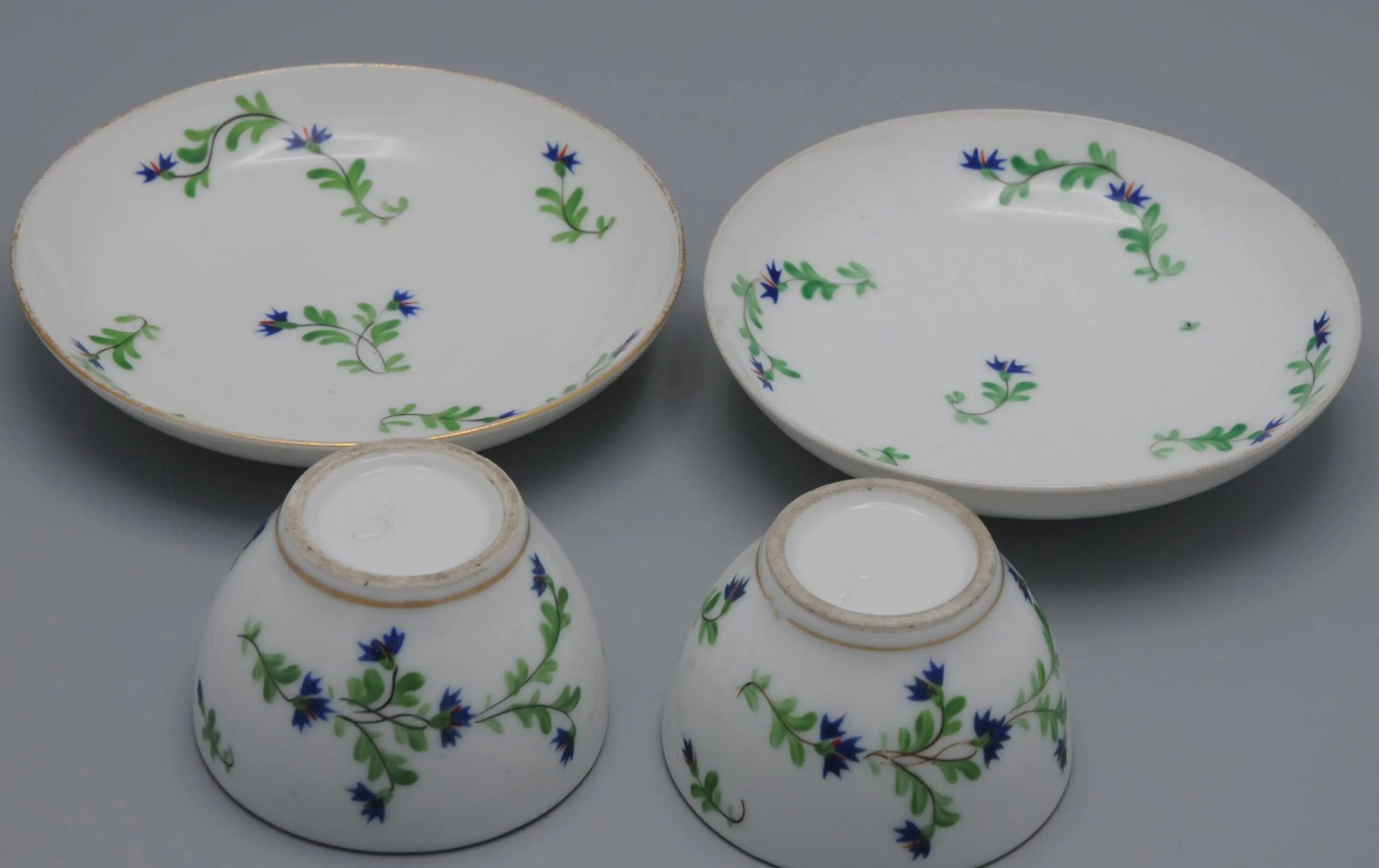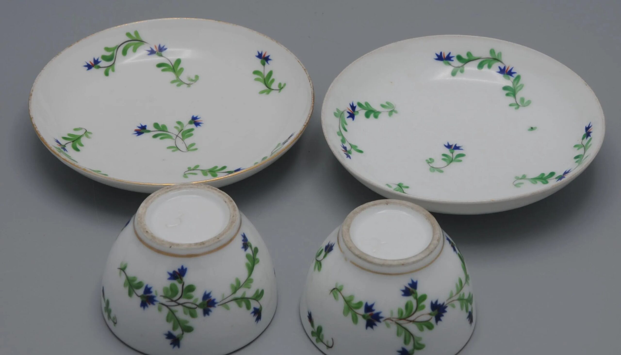 The cornflower (barbeau in French) was eligibly Marie Antoinette’s favorite flower, as it was the color of her eyes. In 1871 Sevres created the service ‘Perles et Barbeaux’ for the queen. The cornflower decor was soon adapted by multiple manufactures and gained popularity all over Europe.