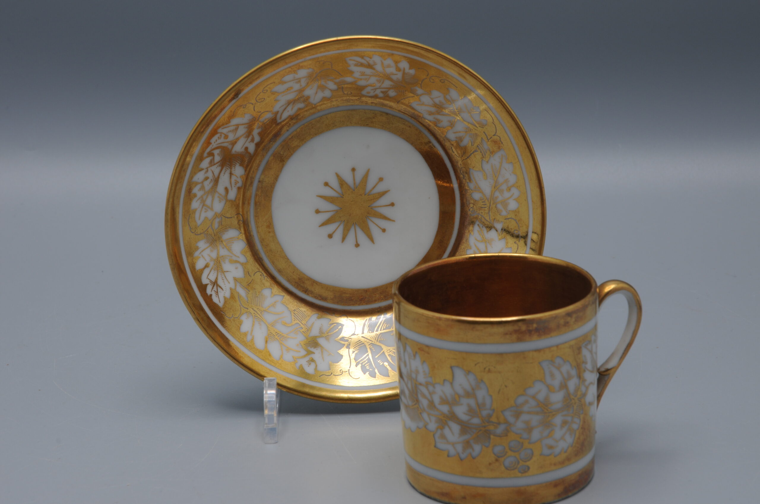 Elegant cup and saucer, of the model ‘Litron’ with elaborate gilt decoration