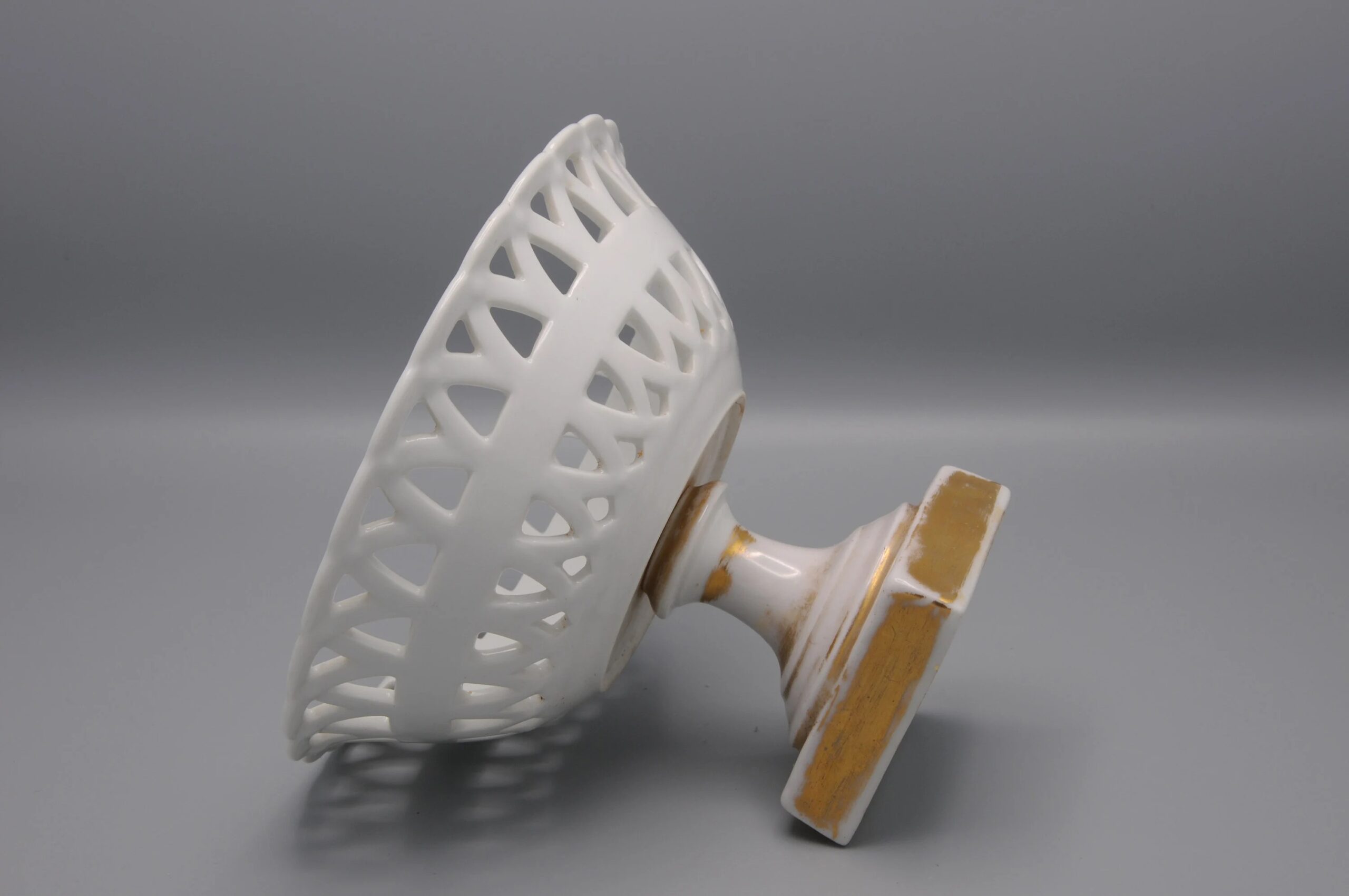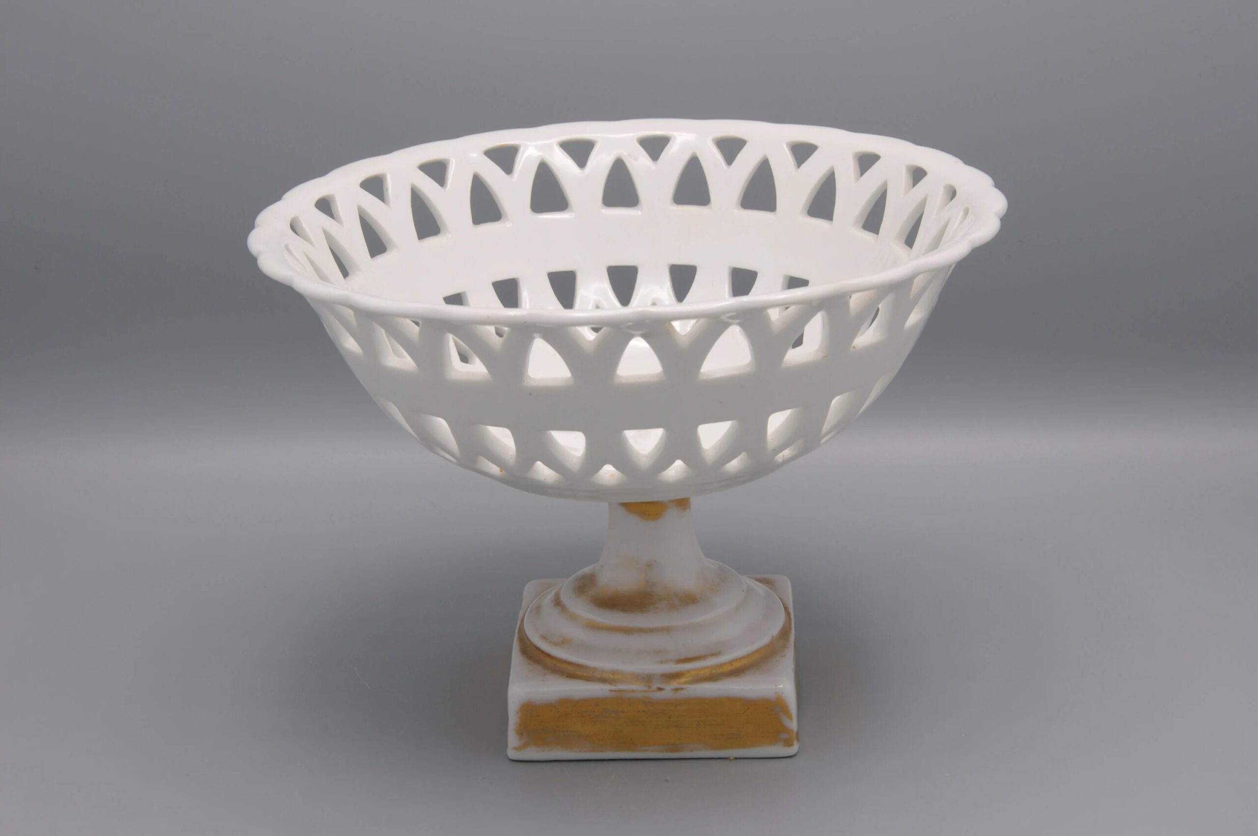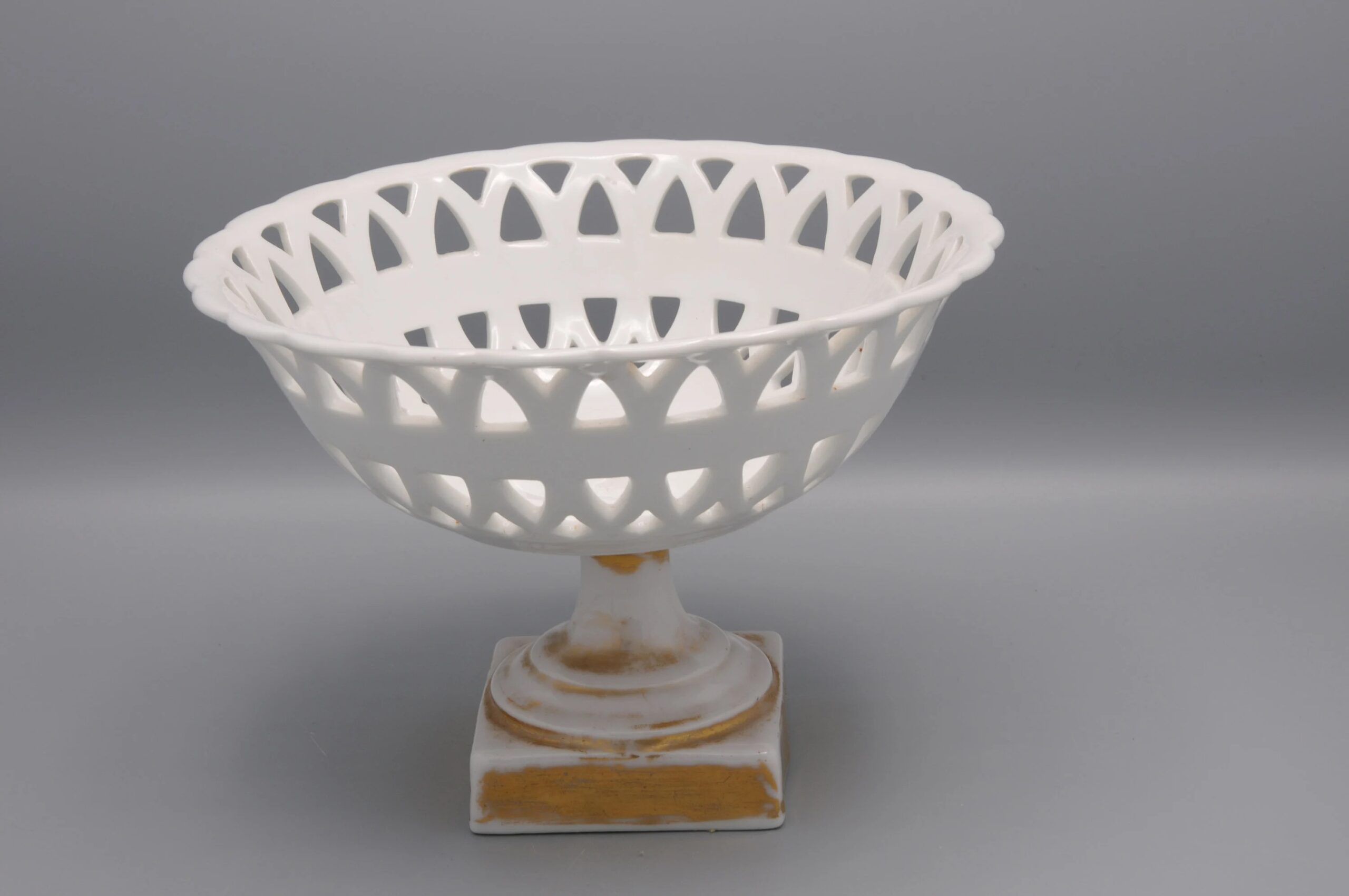 Gilt Porcelaine de Paris Openwork Coupe Centerpiece to be placed centrally on the table, for fruit or flowers. Empire Style.