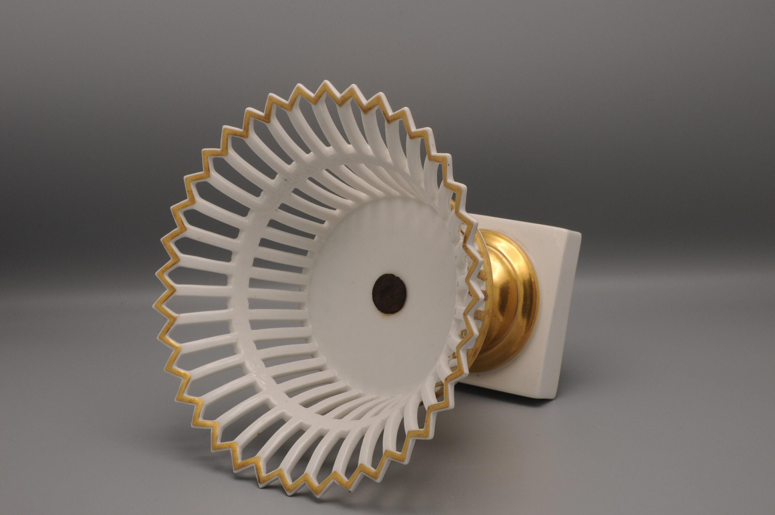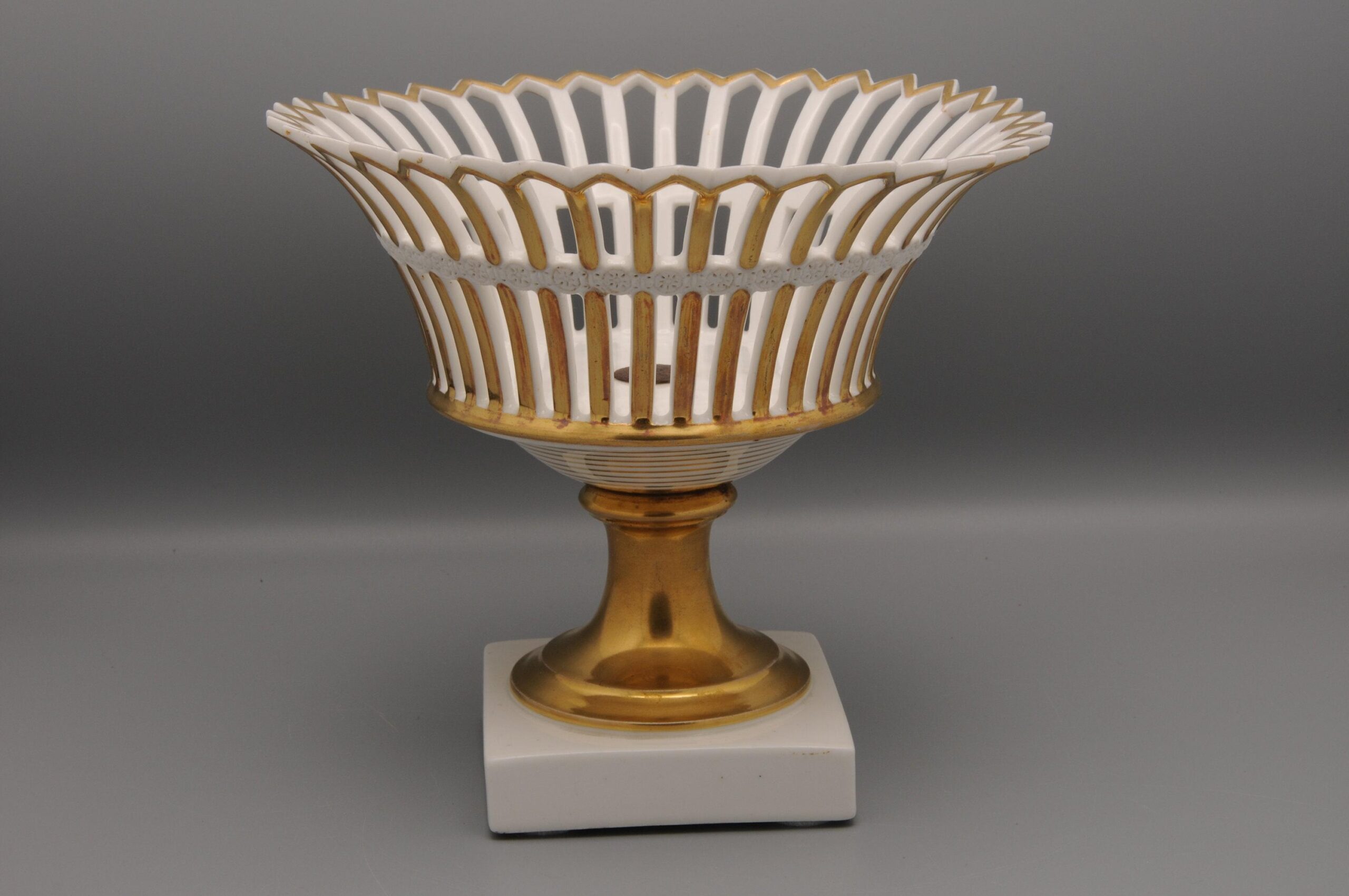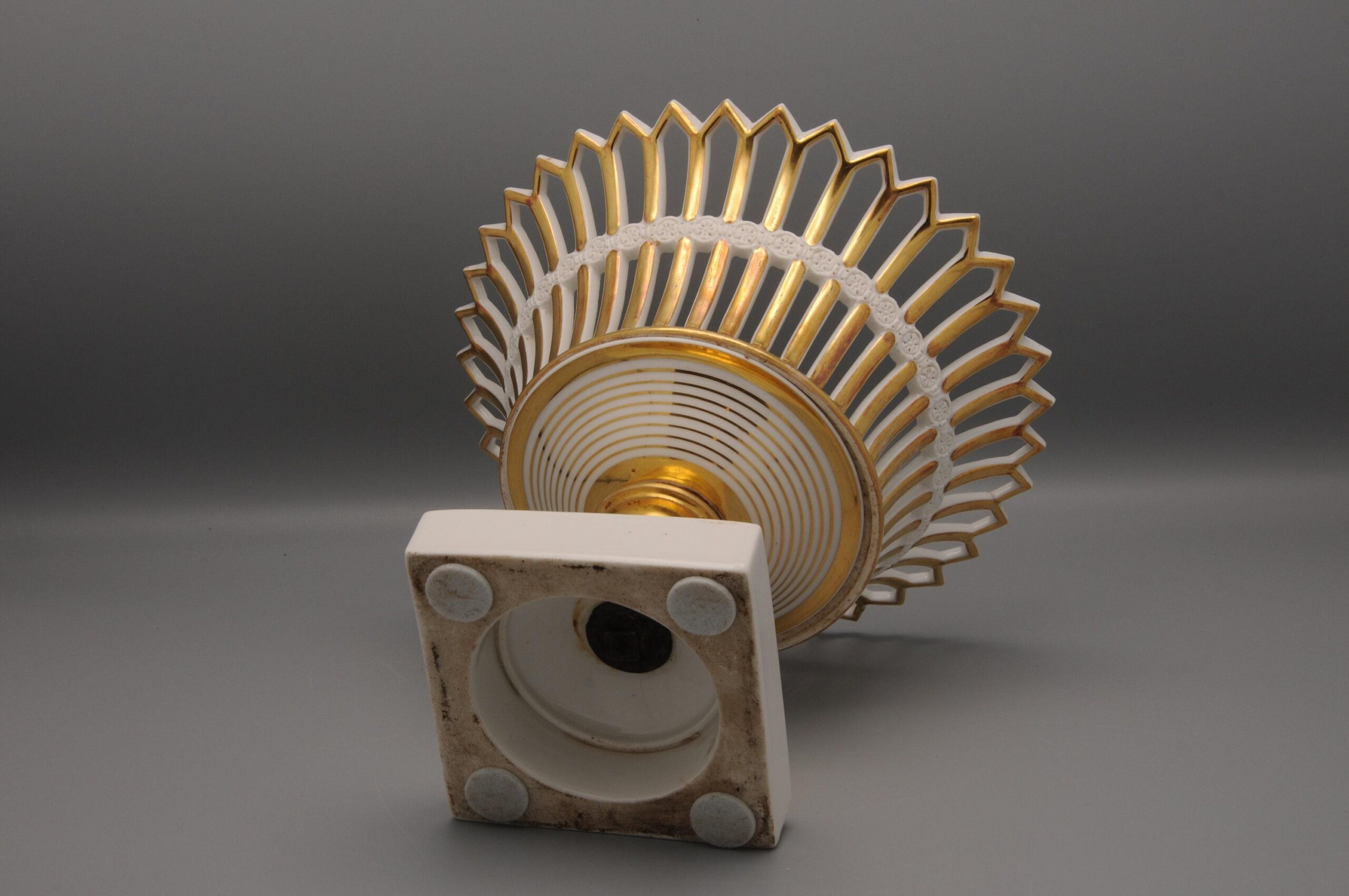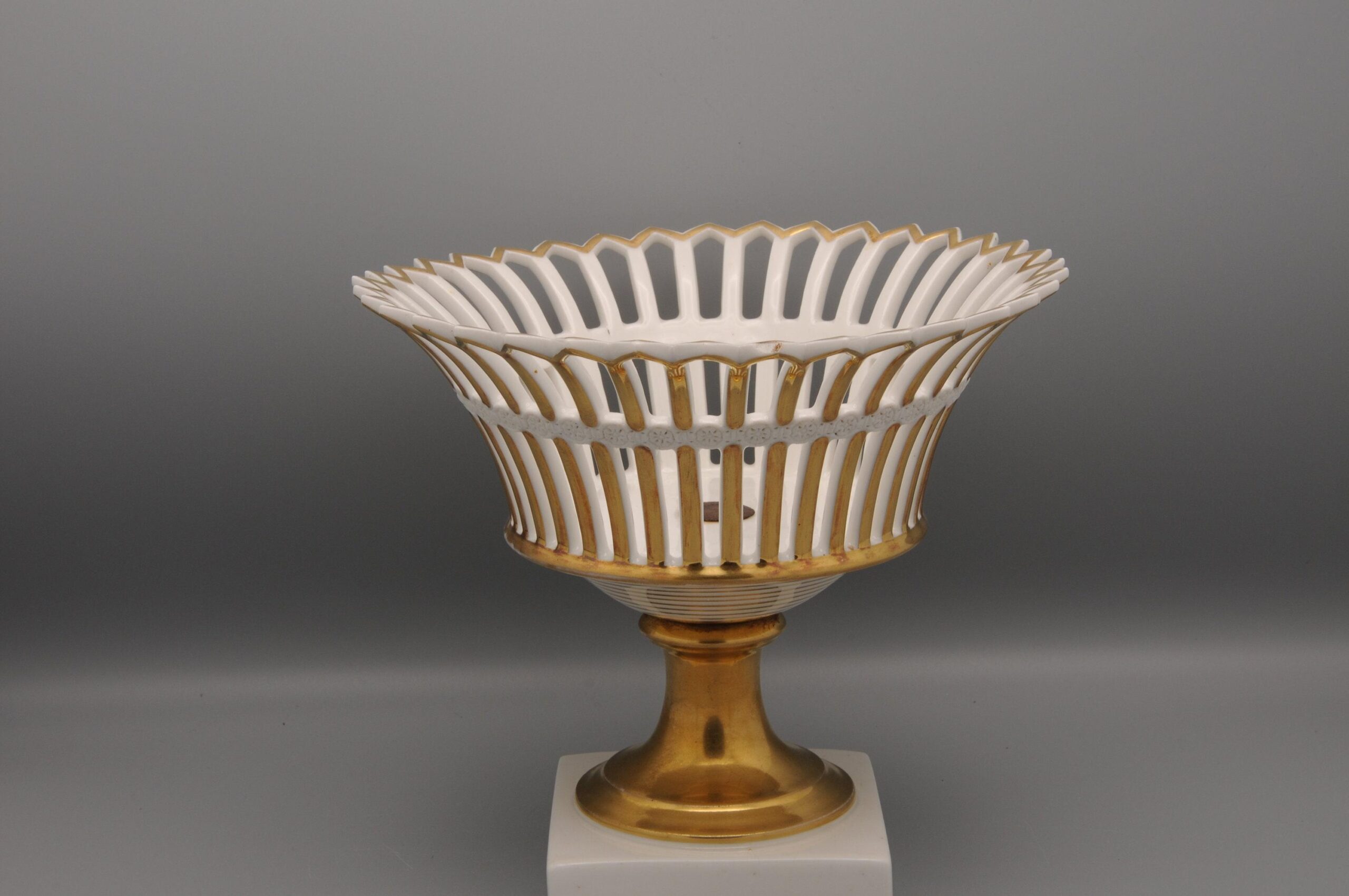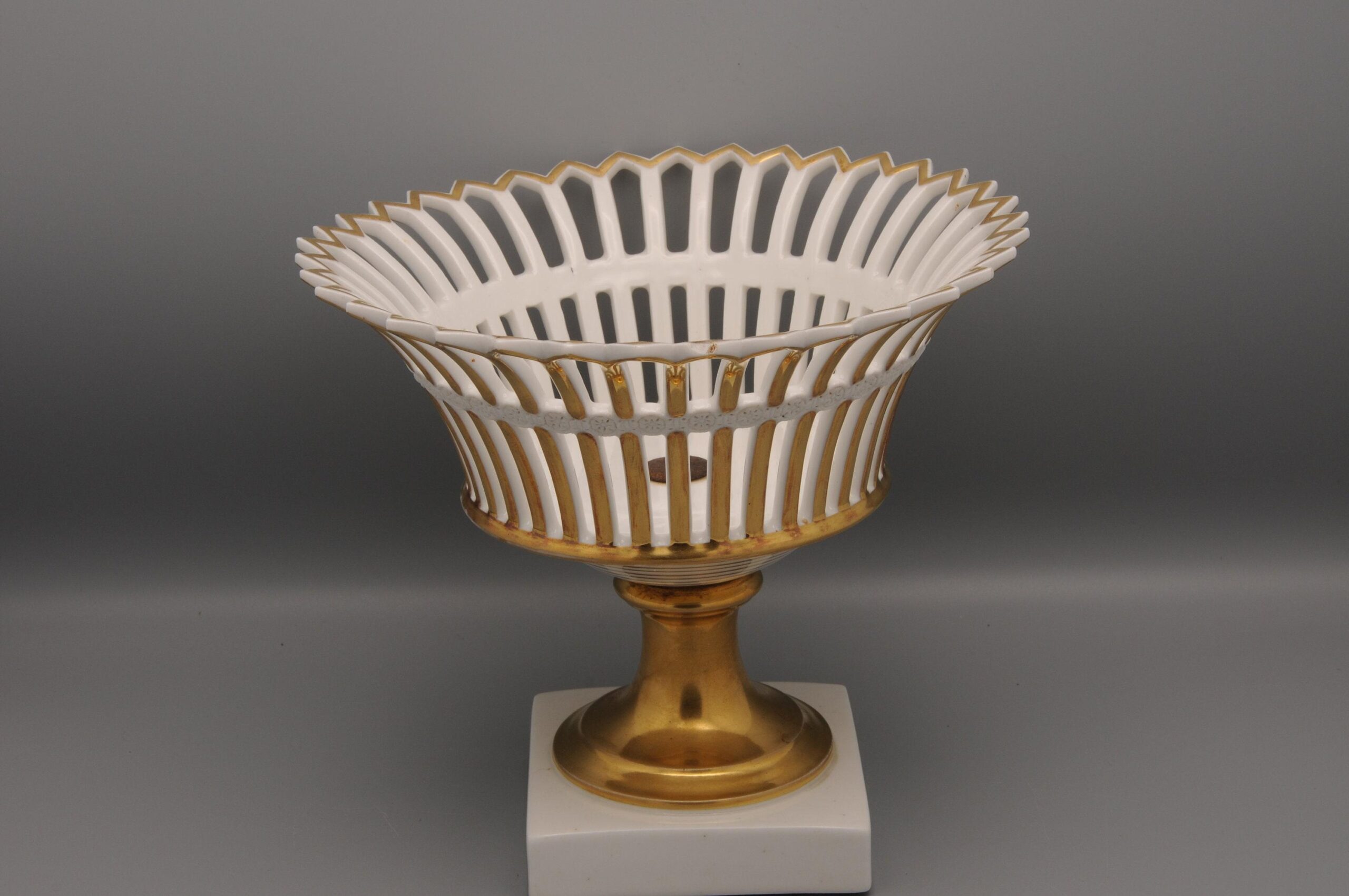 Gilt Porcelaine de Paris Openwork Coupe Centerpiece to be placed centrally on the table, for fruit or flowers. Empire Style.