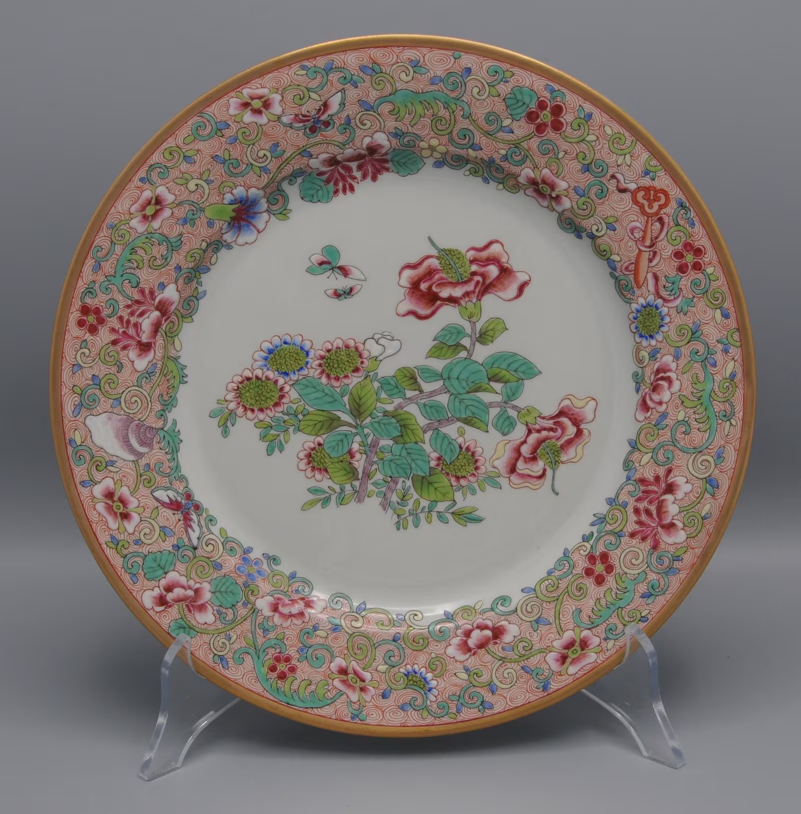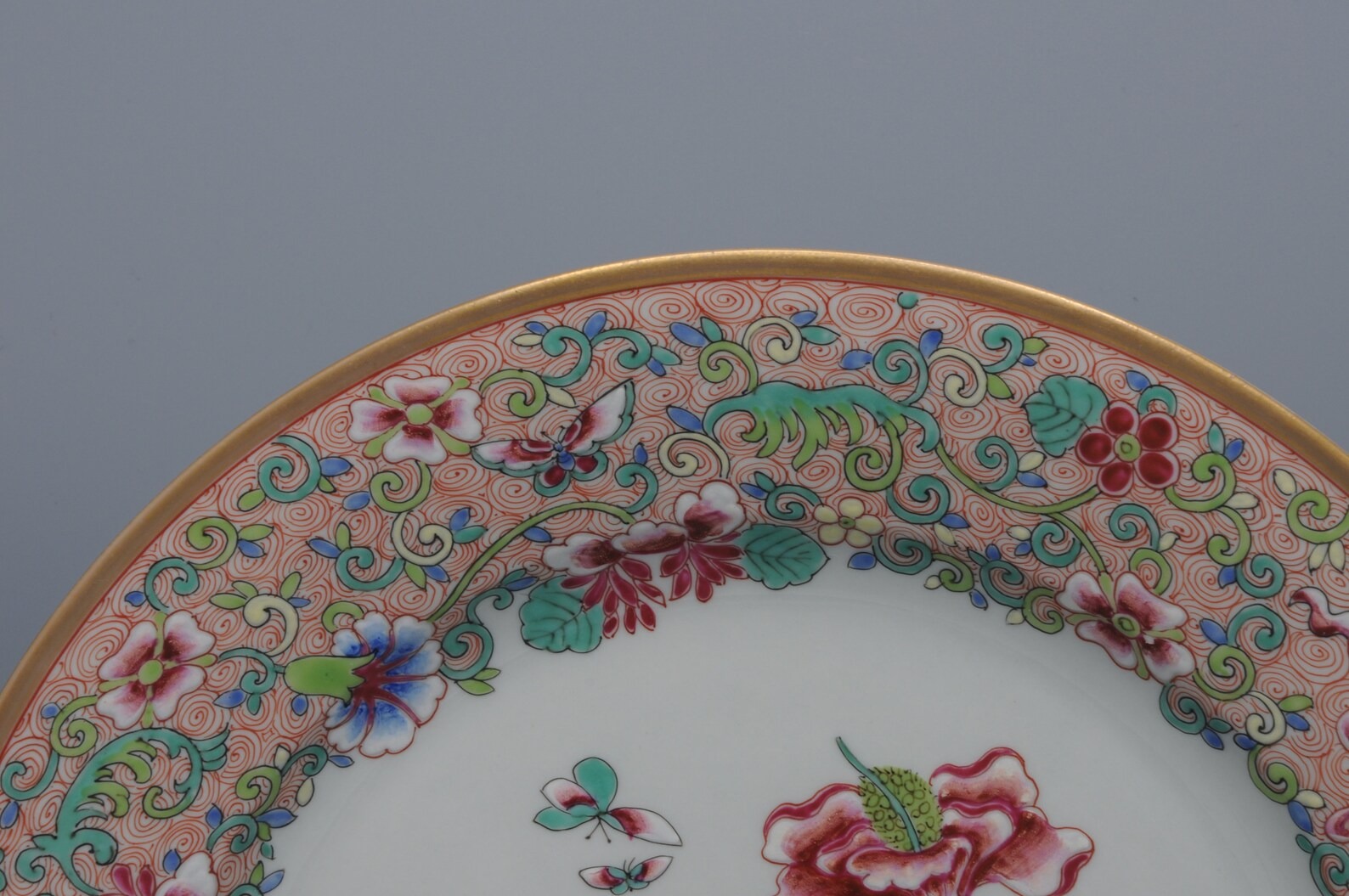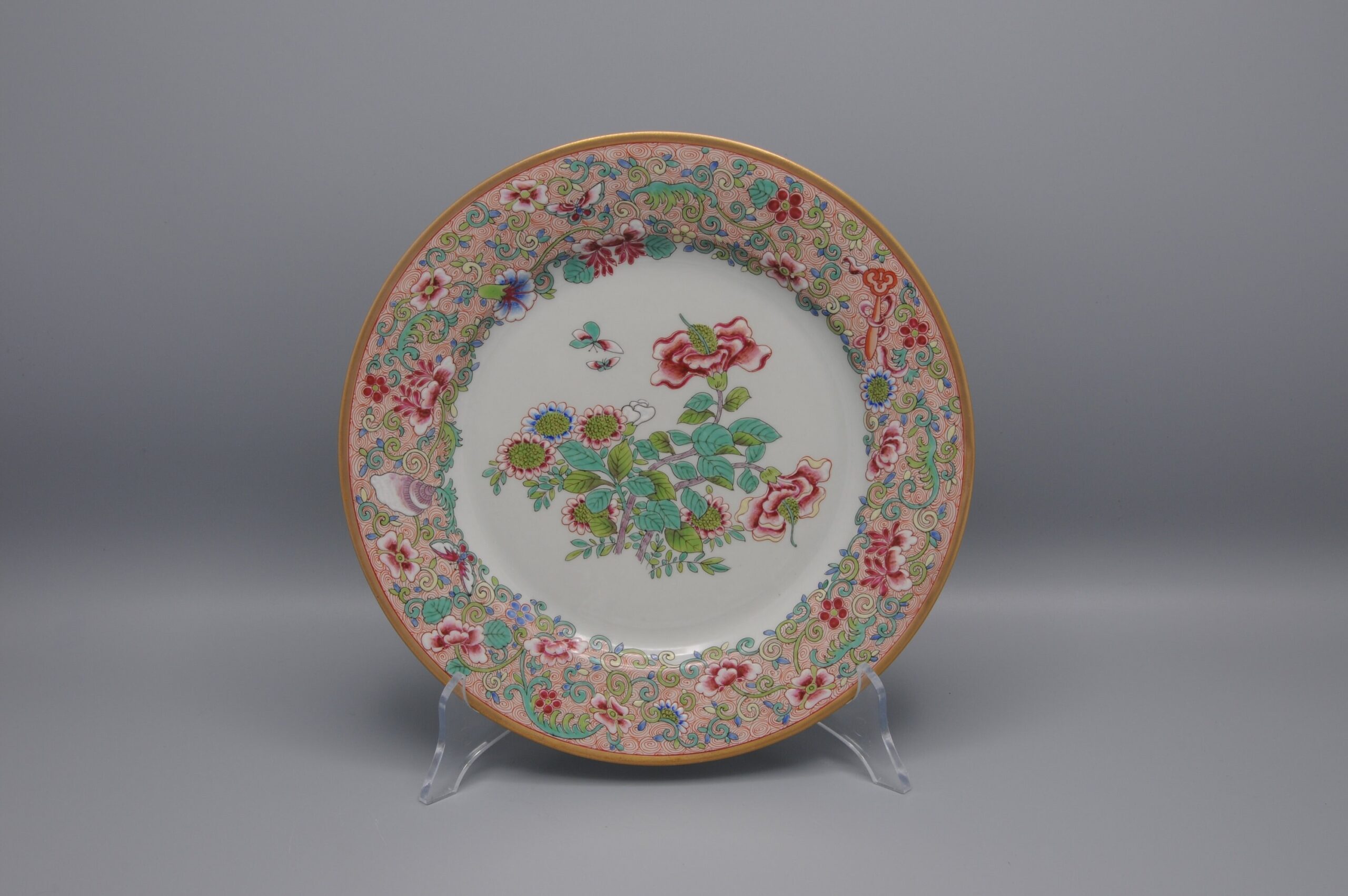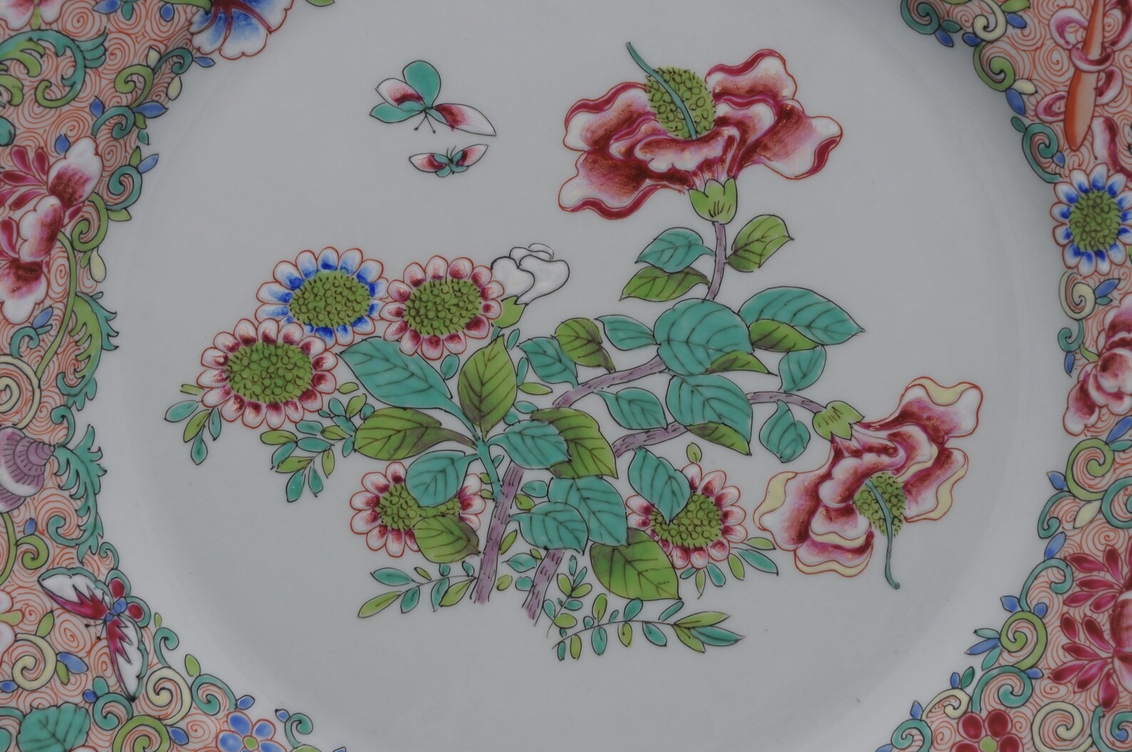 Famille rose plate by Porcelaine de Paris. Attractive handpainted Chinese style decoration of flowers and foliage, comprising shells and butterflies.