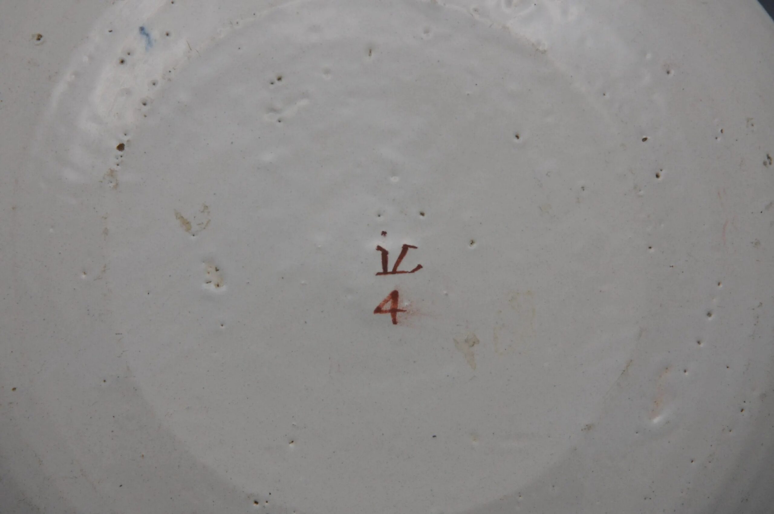 Rare early 18th century Blue Delftware plate with rare chinoiserie decoration of a flower basket in blue and iron-red.